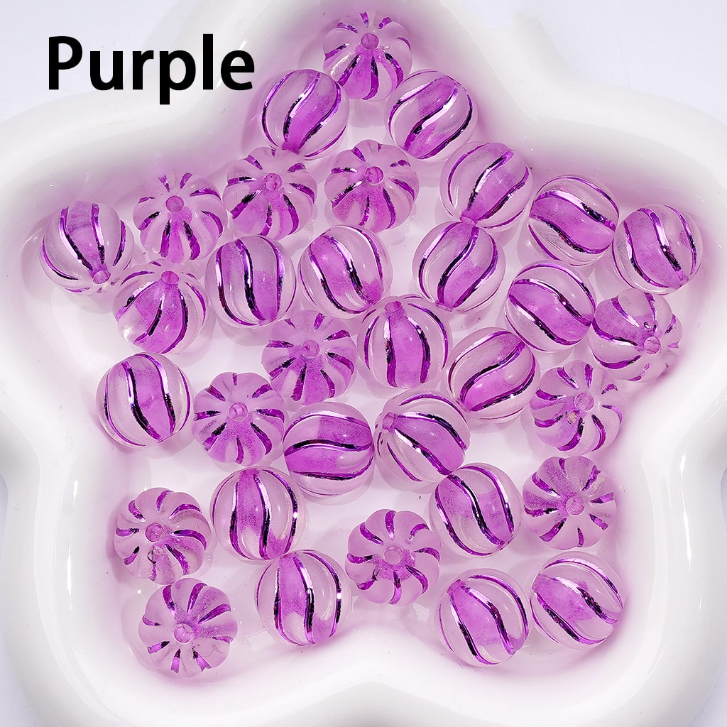 Cute Pumpkin Swirled Clear Acrylic Beads with Colorful Shiny Stripes, 16MM