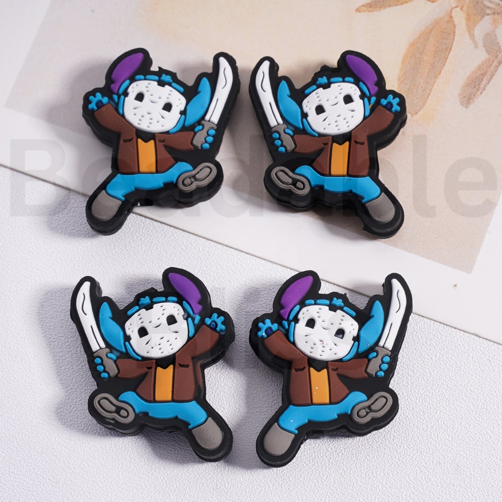 Cute Tropical Space Universe Holds a Machete with Creepy Stick Jaso Voorhee Mask Silicone Focal Beads