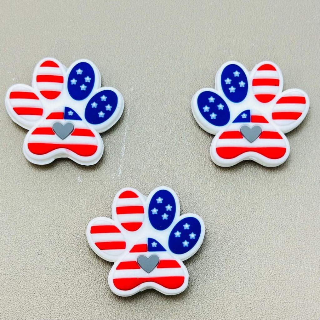 Cute USA America Flag Paw Prints Silicone Focal Beads
