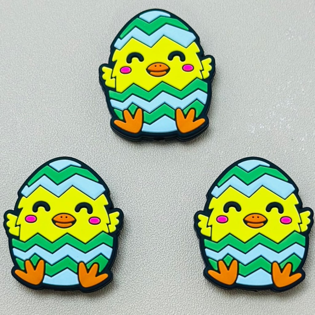 Cute Yellow Chick in a Broken Colorful Egg Easter Silicone Focal Beads