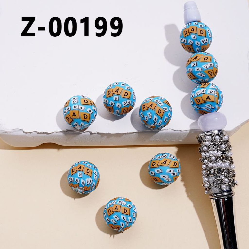 Dad Father Blue Printed Silicone Beads 15MM, Number Z-00199