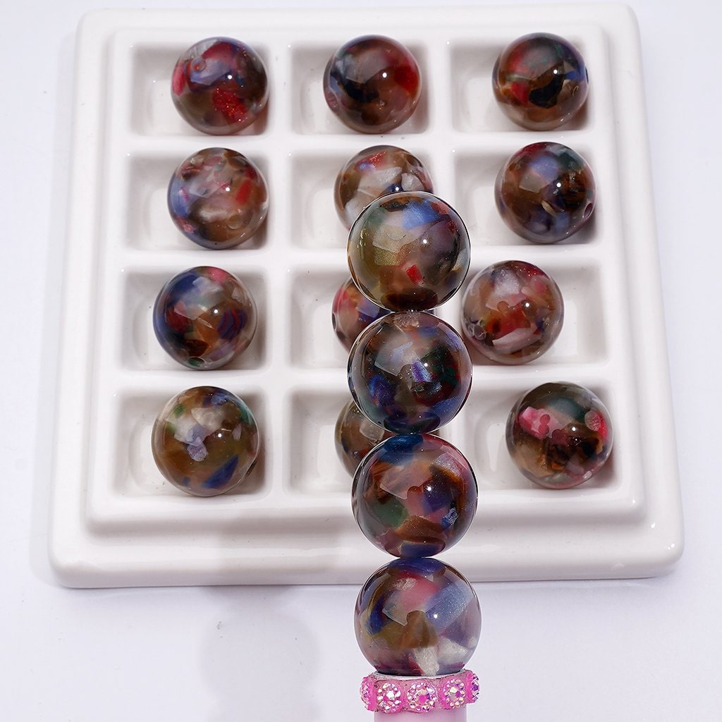 Dark Color Glitter Broken Stones Inside Round Acrylic Beads, 16MM