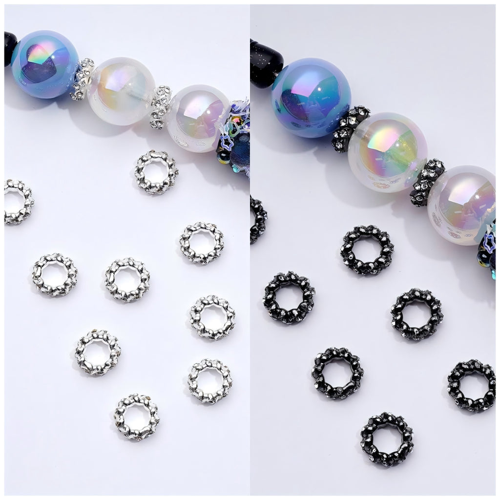 Delicate Mini Cute Silver Gun Black Metal Spacer with Clear Rhinestones, Around 10MM