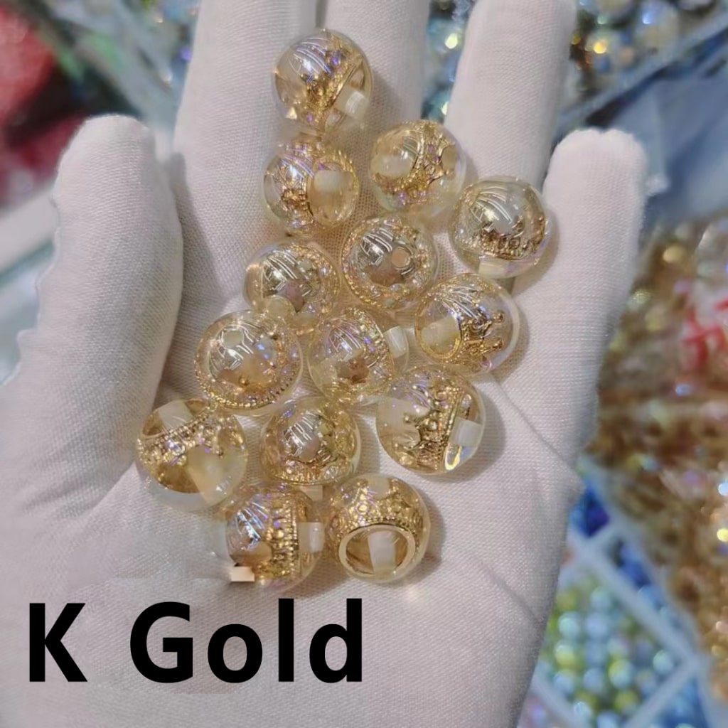 Delicate UV Coating Multi-Color Metal Crown Inside Clear Round Acrylic Beads, 16MM
