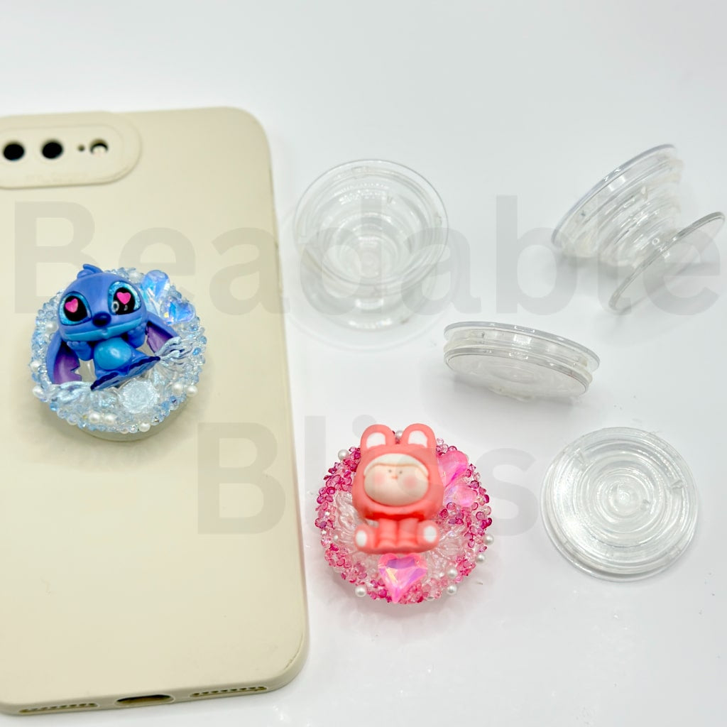DIY Beadable Clear Round Shape Stretched Phone Holder Support Mount Stand Popsocket, 40MM