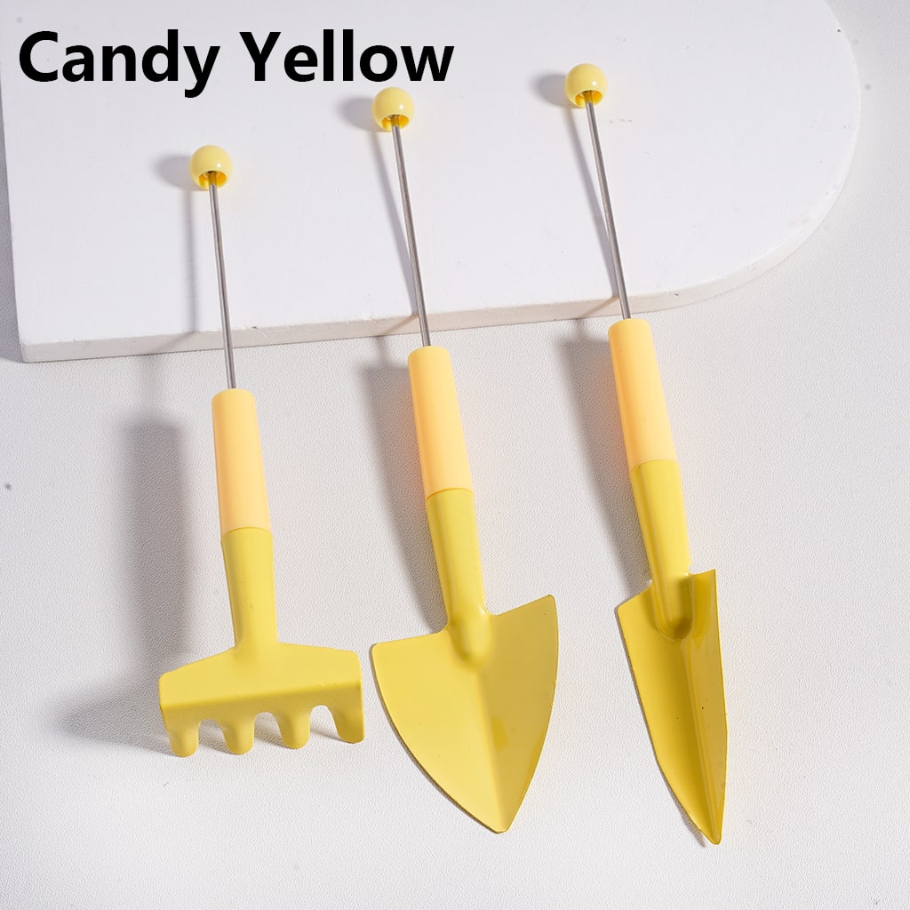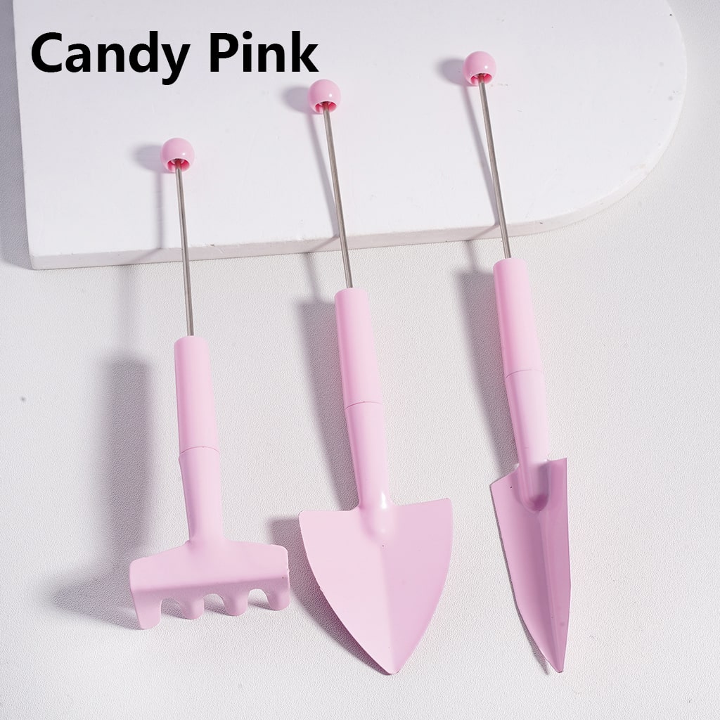 DIY Beadable Metal Garden Tool Set Hand Rake Wide Thin Shovel in Solid Color (1set includes 3pcs)