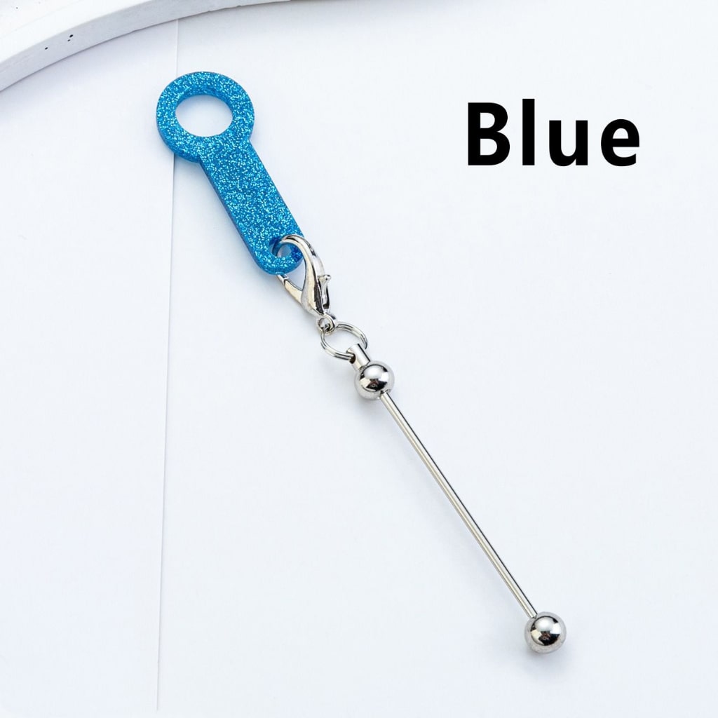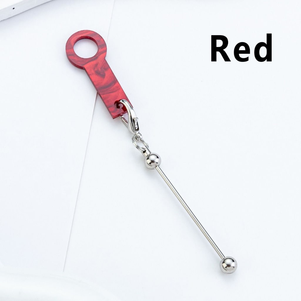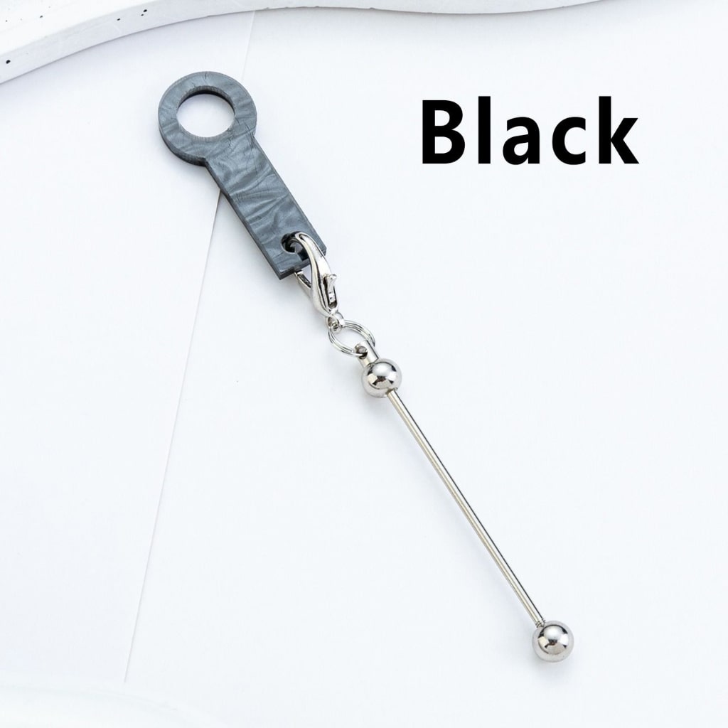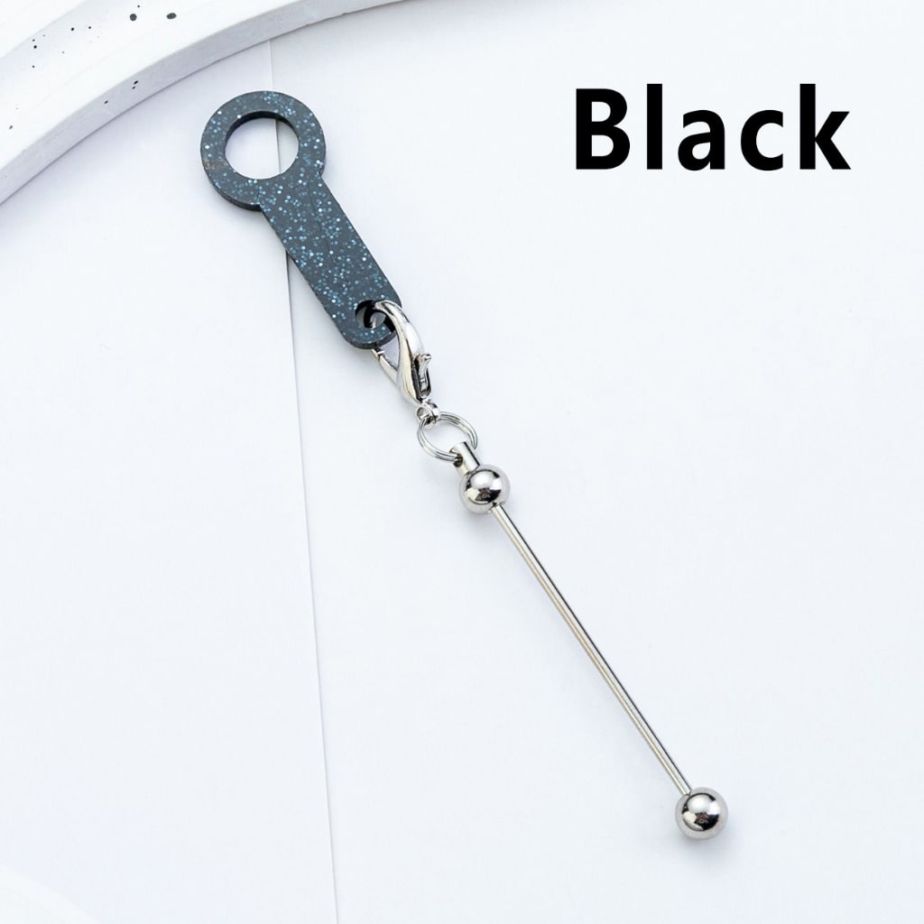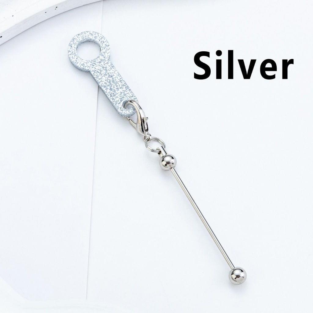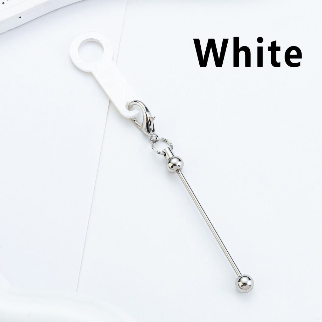 DIY Beadable Silver Metal Bar for Keychain with Carabiner Hook Plastic Long Ring Hoop on Cup's Straw, 120MM