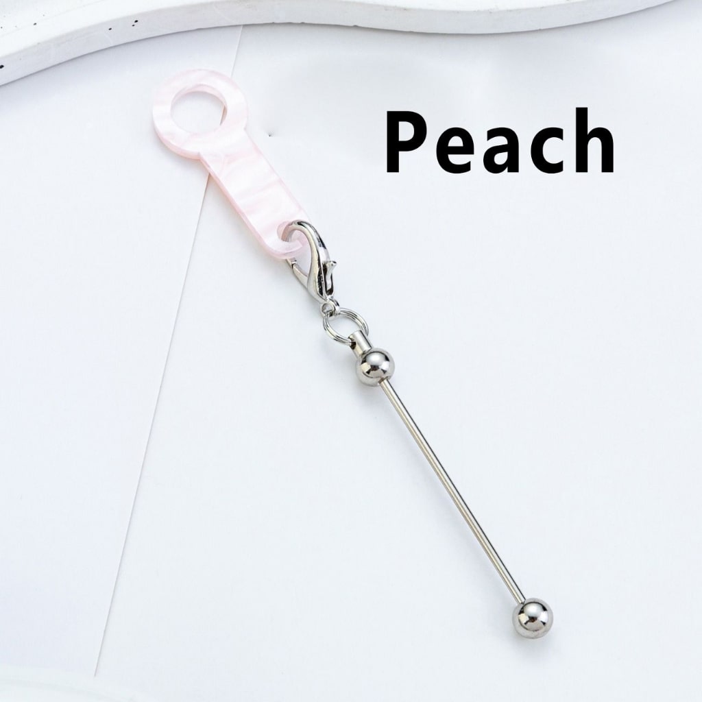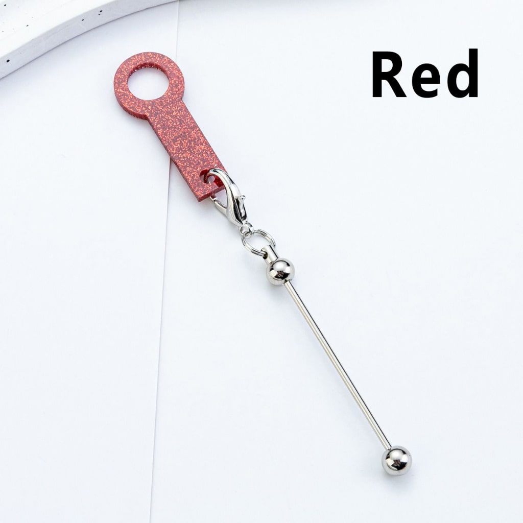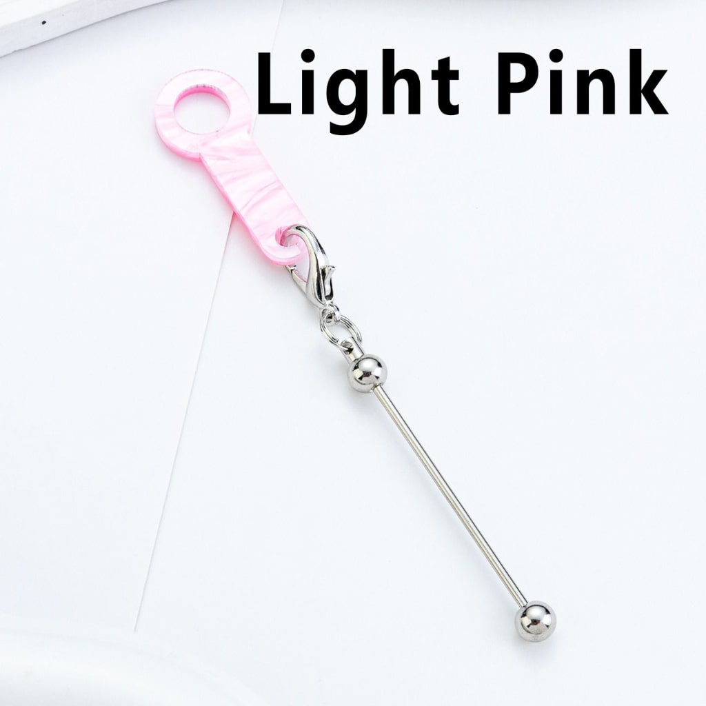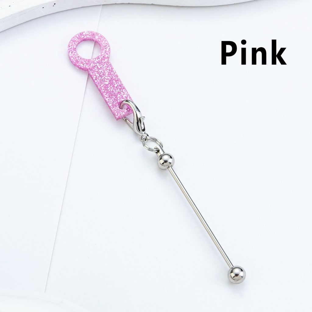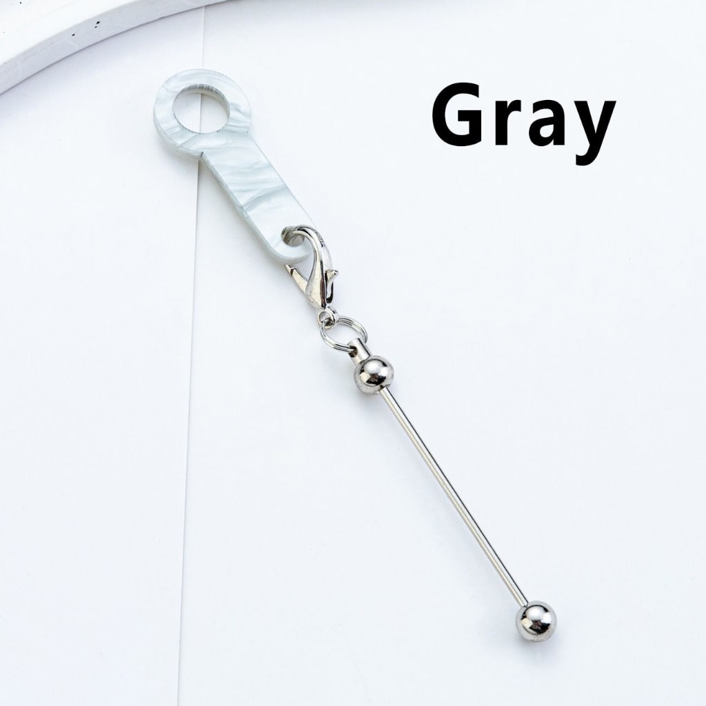 DIY Beadable Silver Metal Bar for Keychain with Carabiner Hook Plastic Long Ring Hoop on Cup's Straw, 120MM