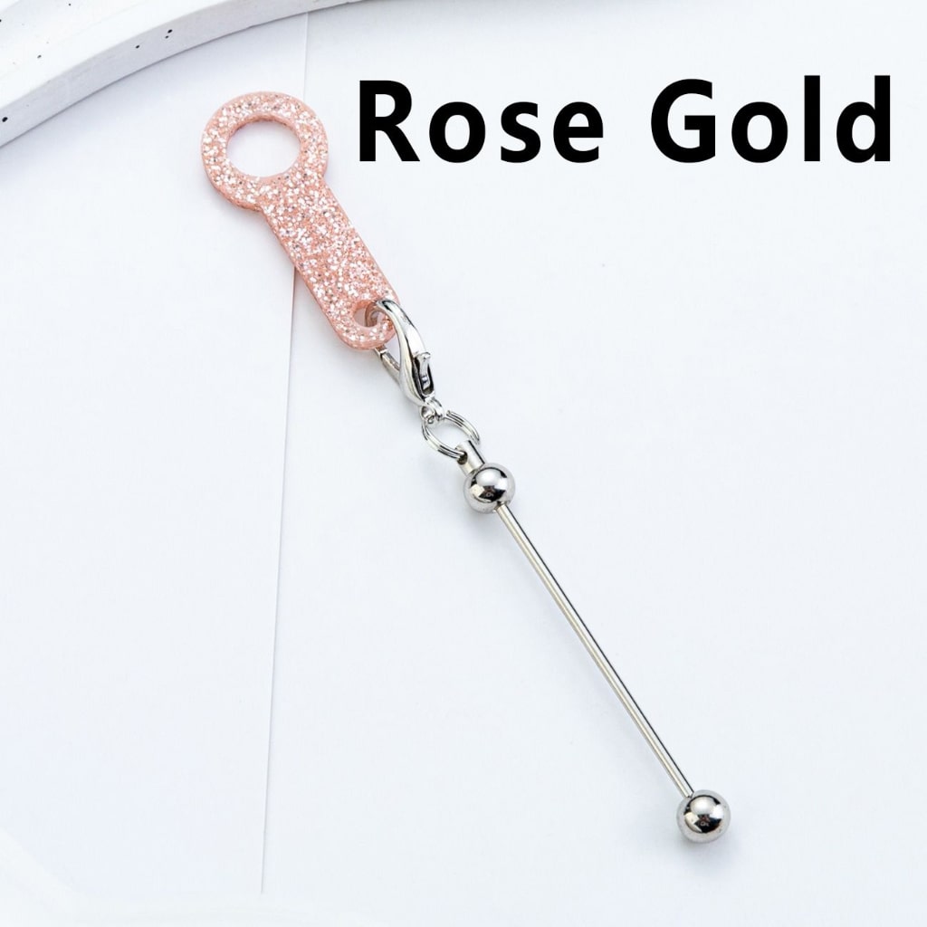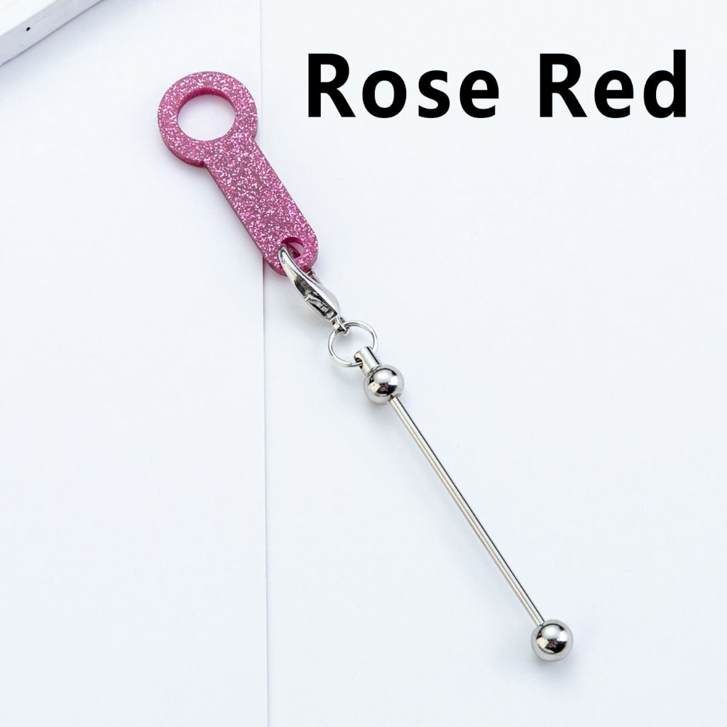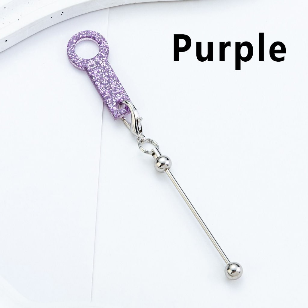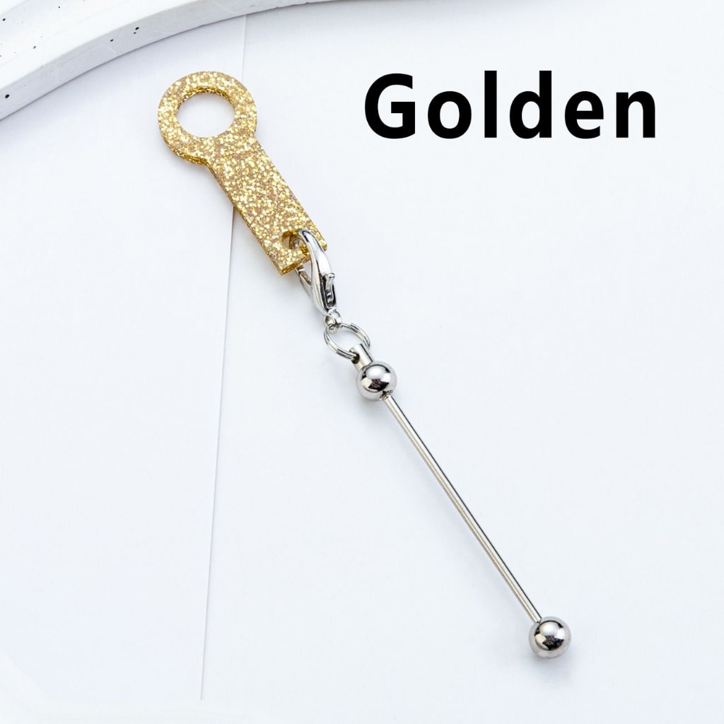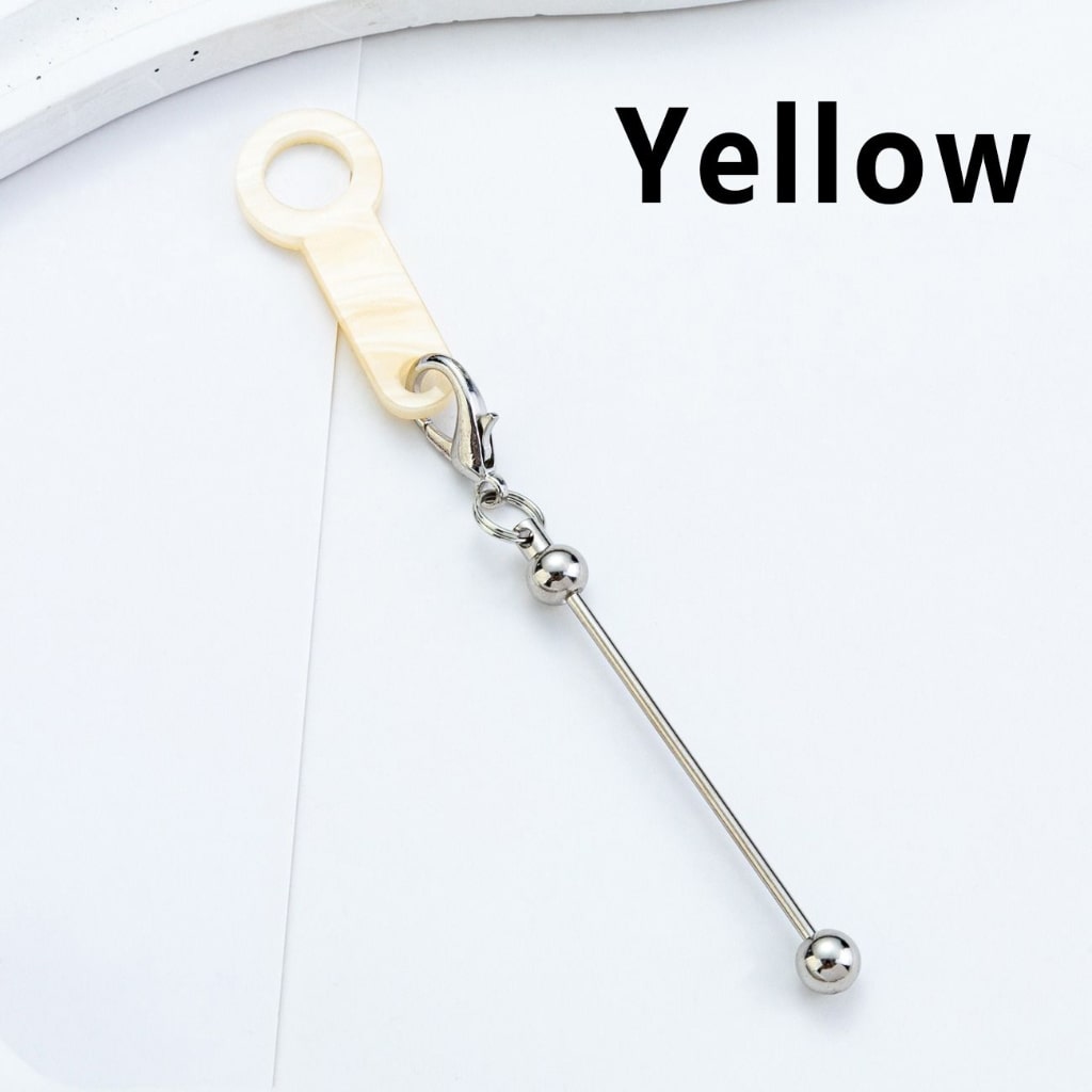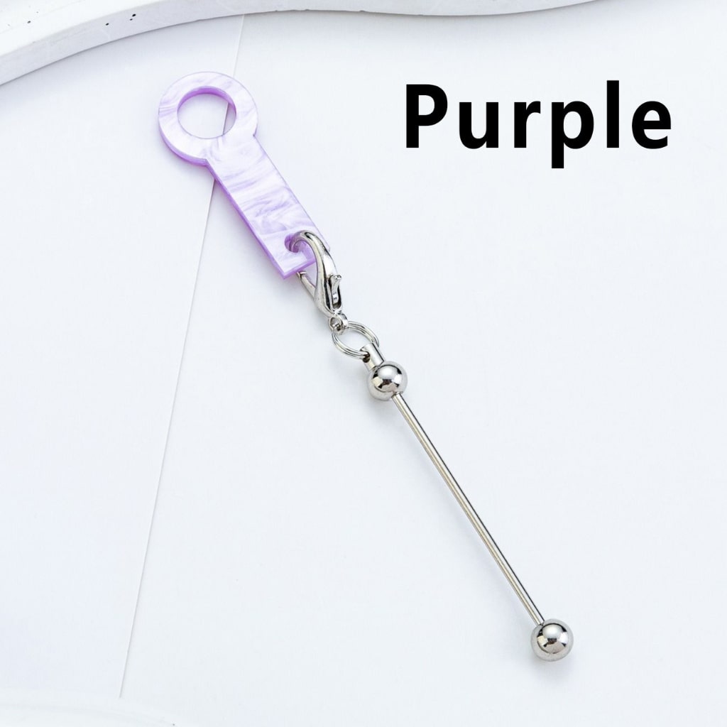 DIY Beadable Silver Metal Bar for Keychain with Carabiner Hook Plastic Long Ring Hoop on Cup's Straw, 120MM