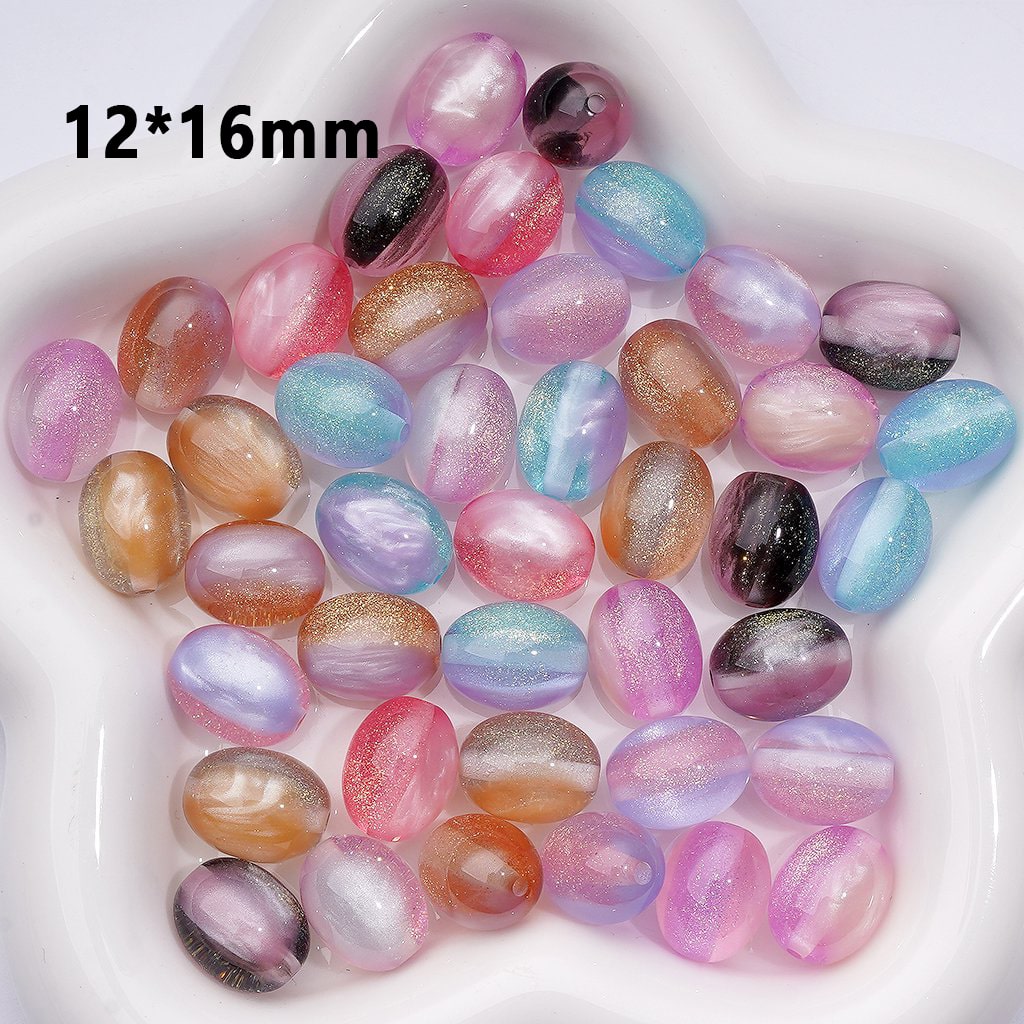 Double Color Glitter Cat Eye Style Oval Shape Acrylic Beads, Around 12*16MM, Random Mix