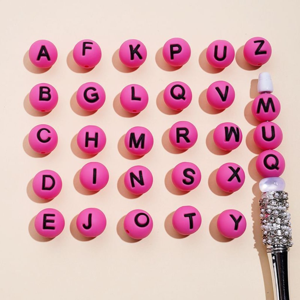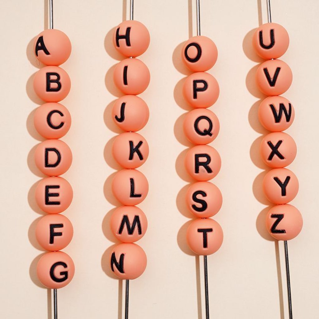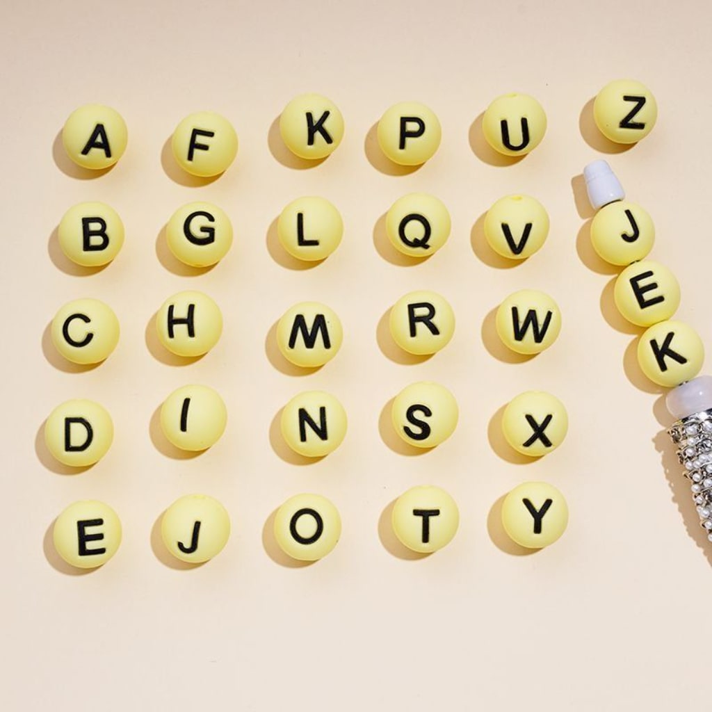English Letter Round Silicone Beads in Solid Color, 15MM, Random Mix Letters, Please Read the Description