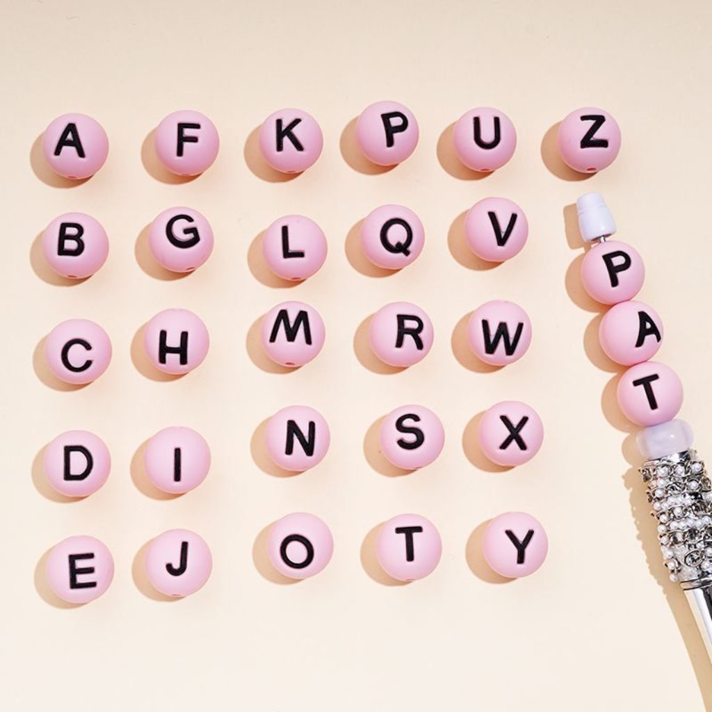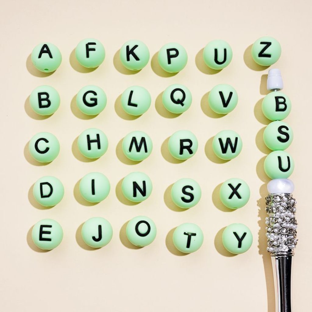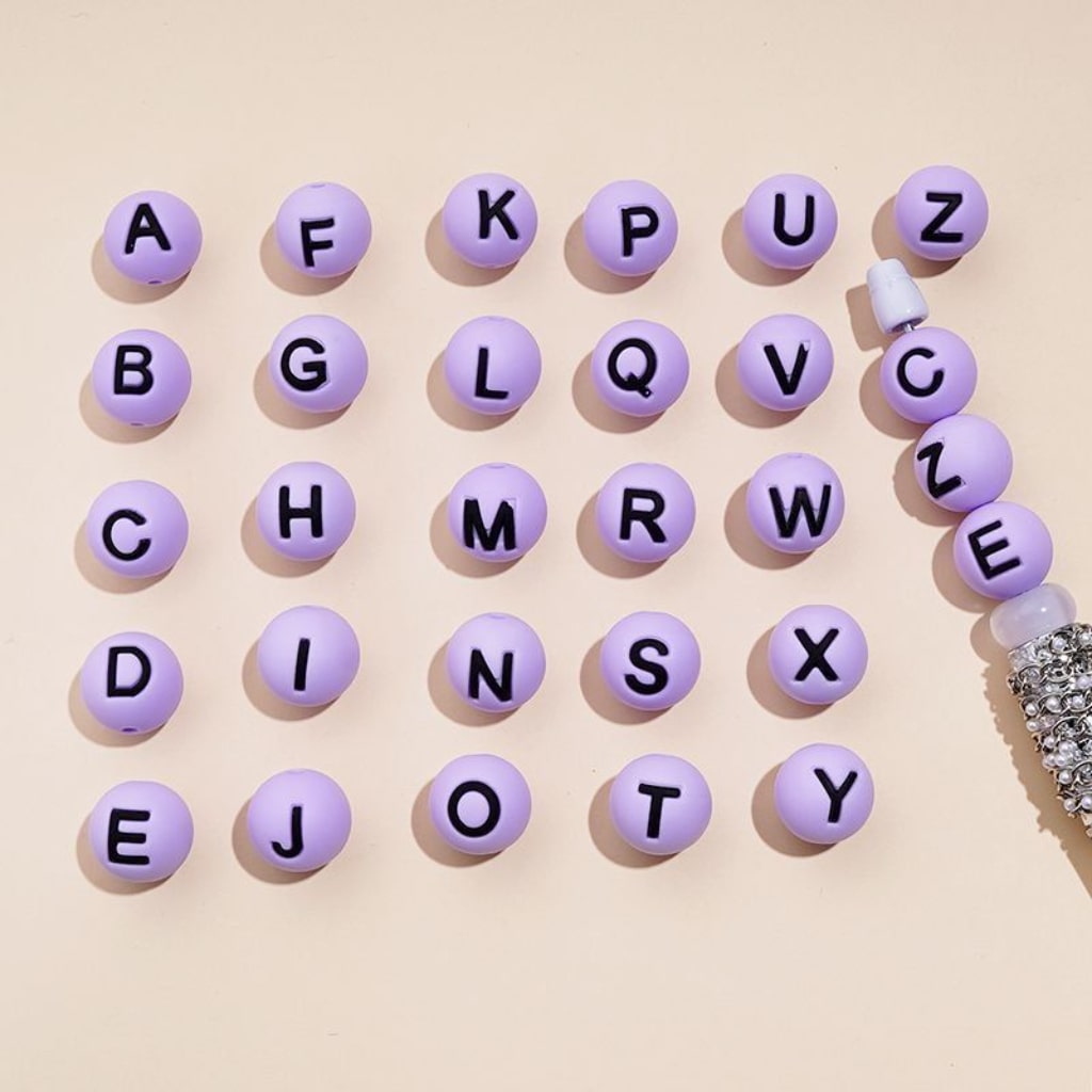 English Letter Round Silicone Beads in Solid Color, 15MM, Random Mix Letters, Please Read the Description