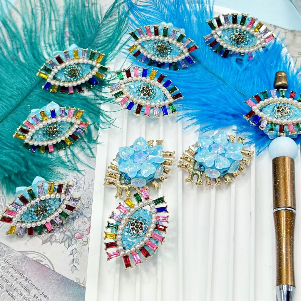 Exquisite Bling Bling Golden Alloy Colorful Evil Eye with White Pearls Chain Shiny Rhinestones Butterfly Heart Star Diamonds Clay Beads, Random Mix, Around 30*42MM