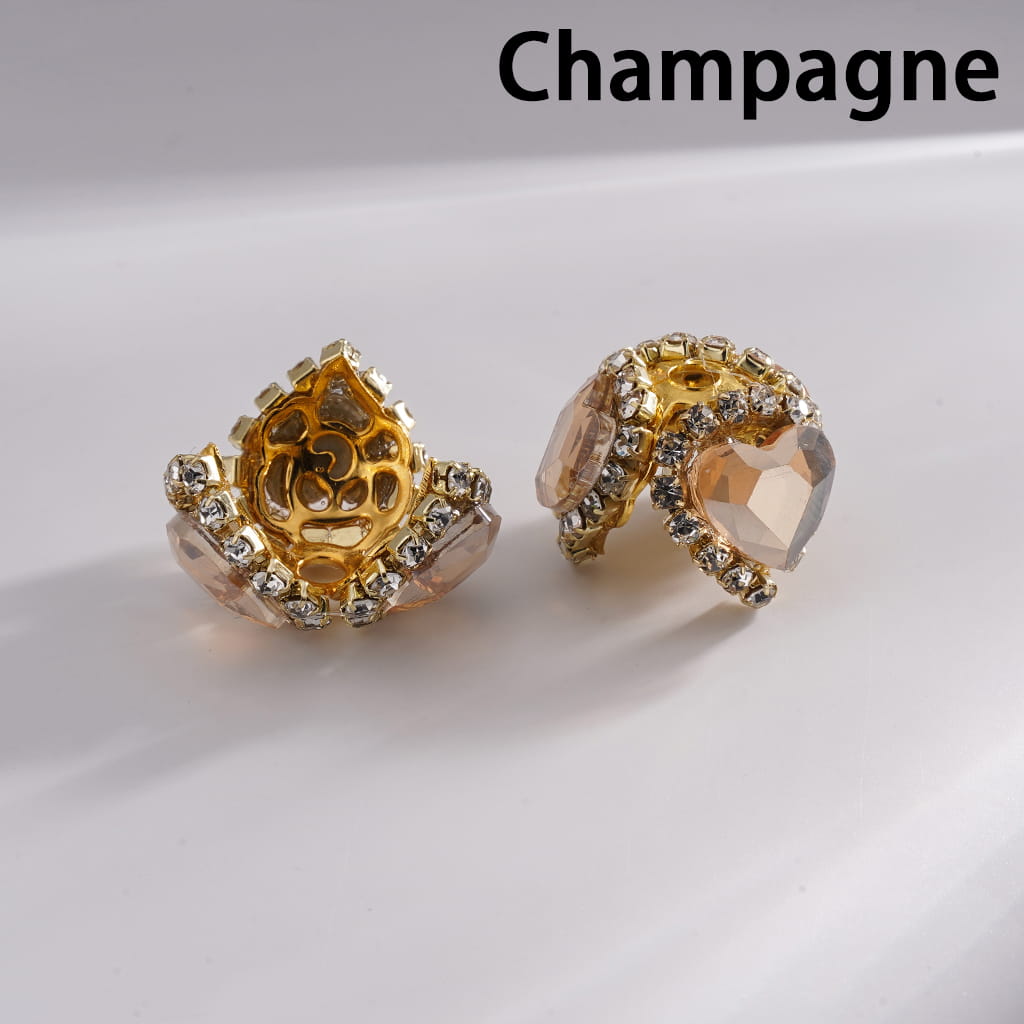 Fancy Bead Cages with Heart Rhinestones and Clear Rhinestone Chains, Gold Bead Cap, Multi-Color (They Fit 16MM Beads)