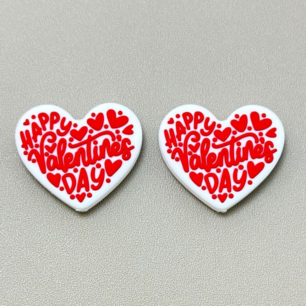 Happy Valentine's Day Hearts Silicone Focal Beads