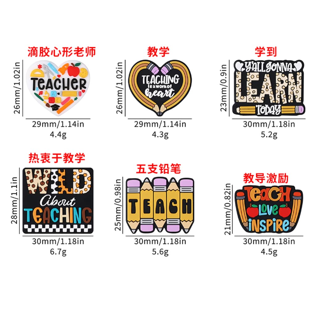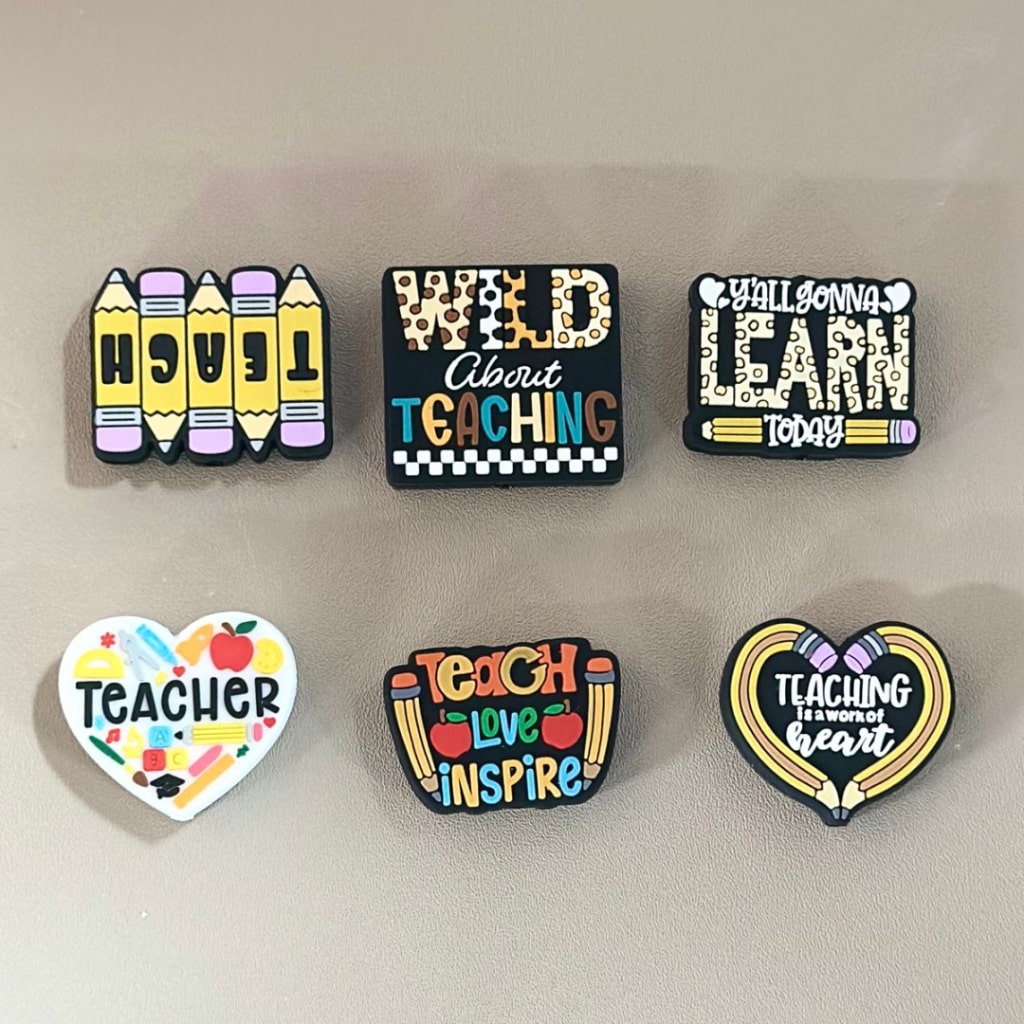 Heart Teacher Teaching is a work of Heart Y'all Gonna Learn Today Wild about Teaching Five Pencils Teach Love Inspire Silicone Focal Beads