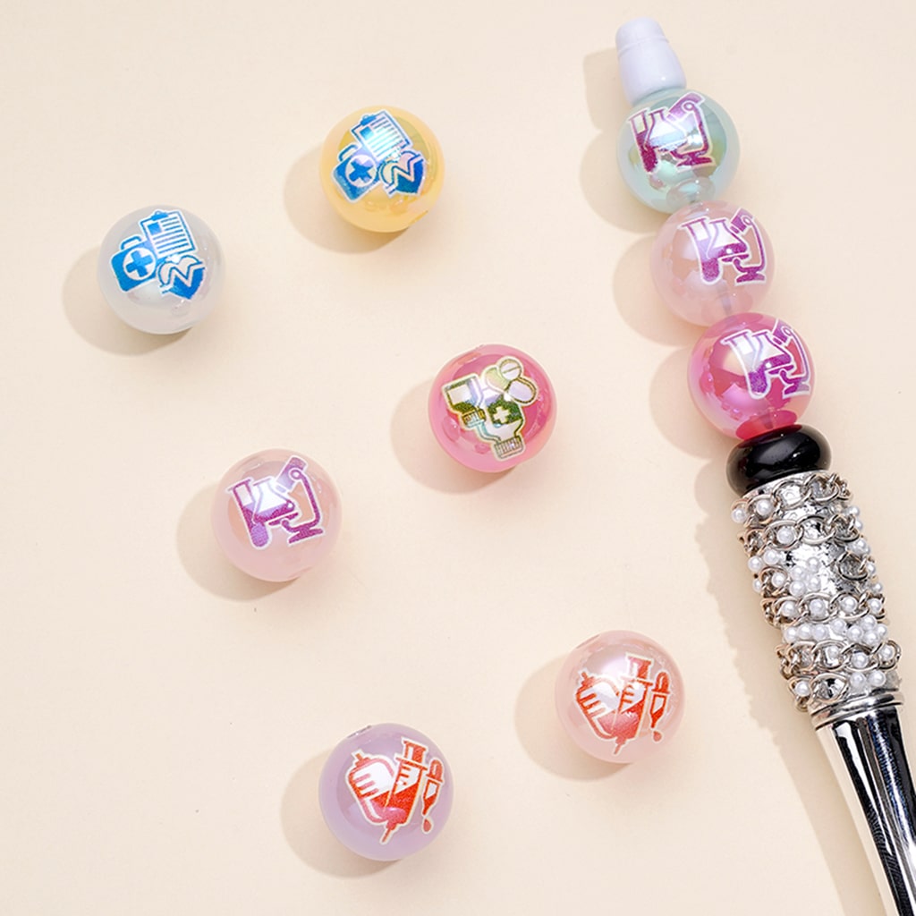 Hospital Doctor Health Care Jelly Color Round Acrylic Beads, Random Mix, 16MM