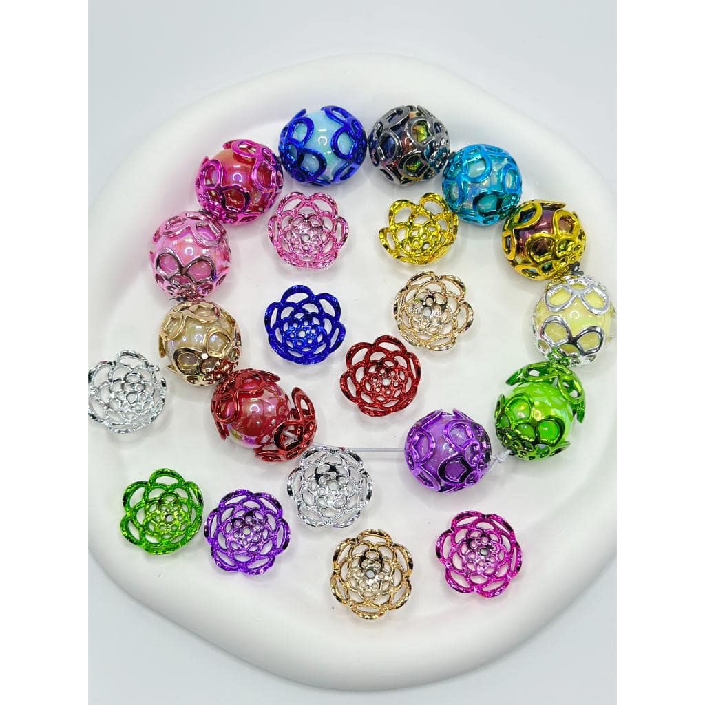Large Bead Cap Bead Cage Flower Shape Floral Glossy Metallic Colors 20mm