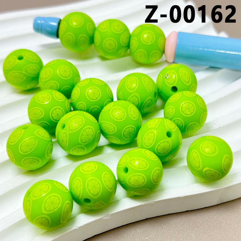 Lemon Slice Green Round Printed Silicone Beads 15mm, Number Z-00162