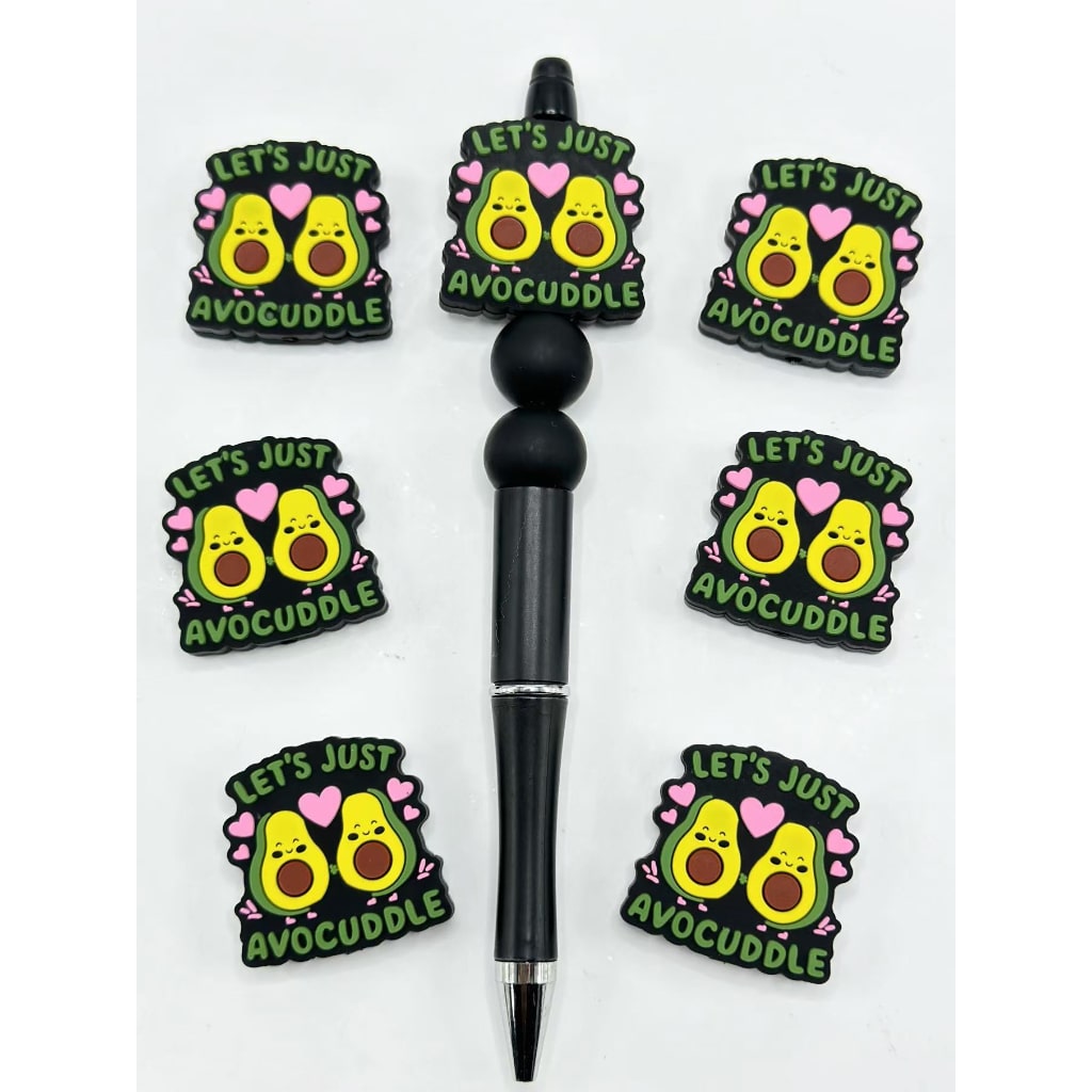 Let's Just Avocuddle Avocado Fruit Pink Hearts Silicone Focal Beads