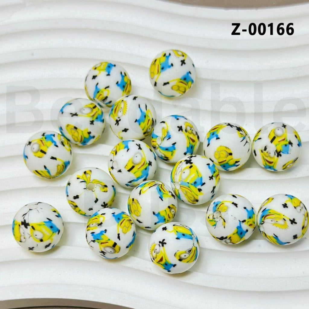 Little Cute Banana Buddies White Round Printed Silicone Beads 15mm, Number Z-00166
