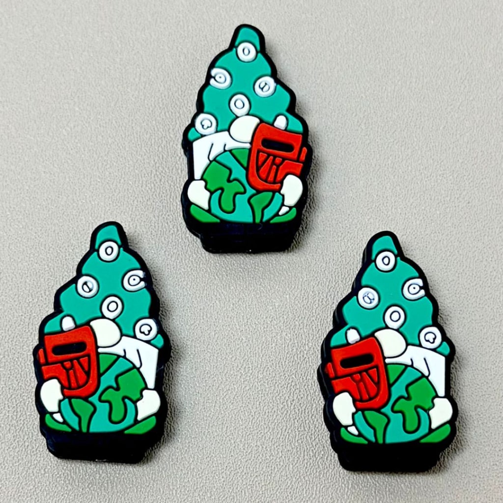 Little Cute Gnome Holds a Red Phone & Earth Model Silicone Focal Beads