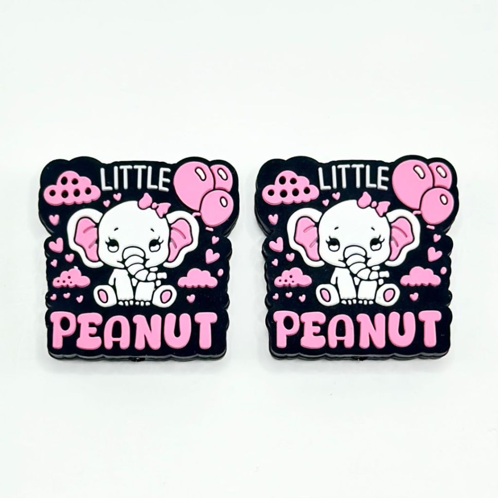 Little Peanut Cute Baby Elephant with Pink Bowknot Balloon Cloud Heart Silicone Focal Beads