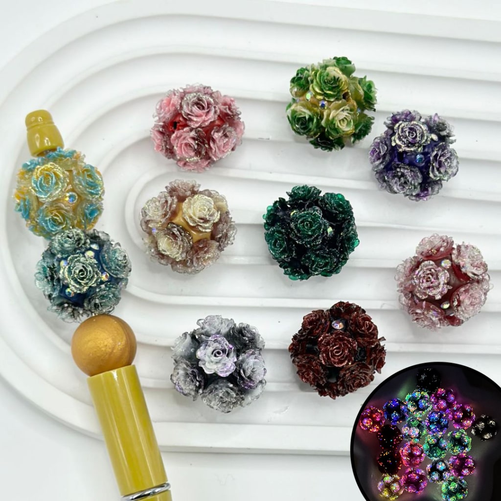 Luminous Dark Colors Series Glittery Flowers AB Rhinestones Round Clay Beads, Random Mix, Around 22MM