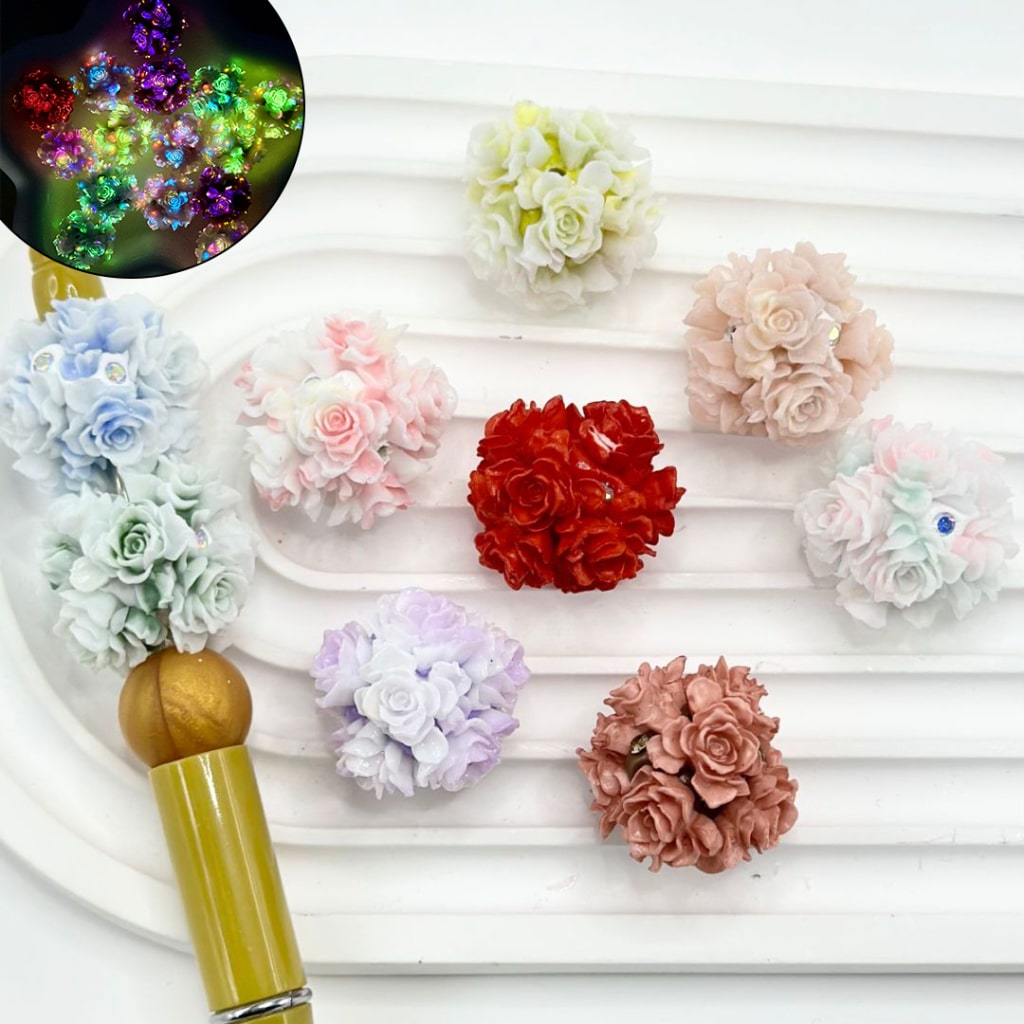 Luminous Ombre Colorful Cute Flowers AB Rhinestones Round Clay Beads, Random Mix, Around 24MM