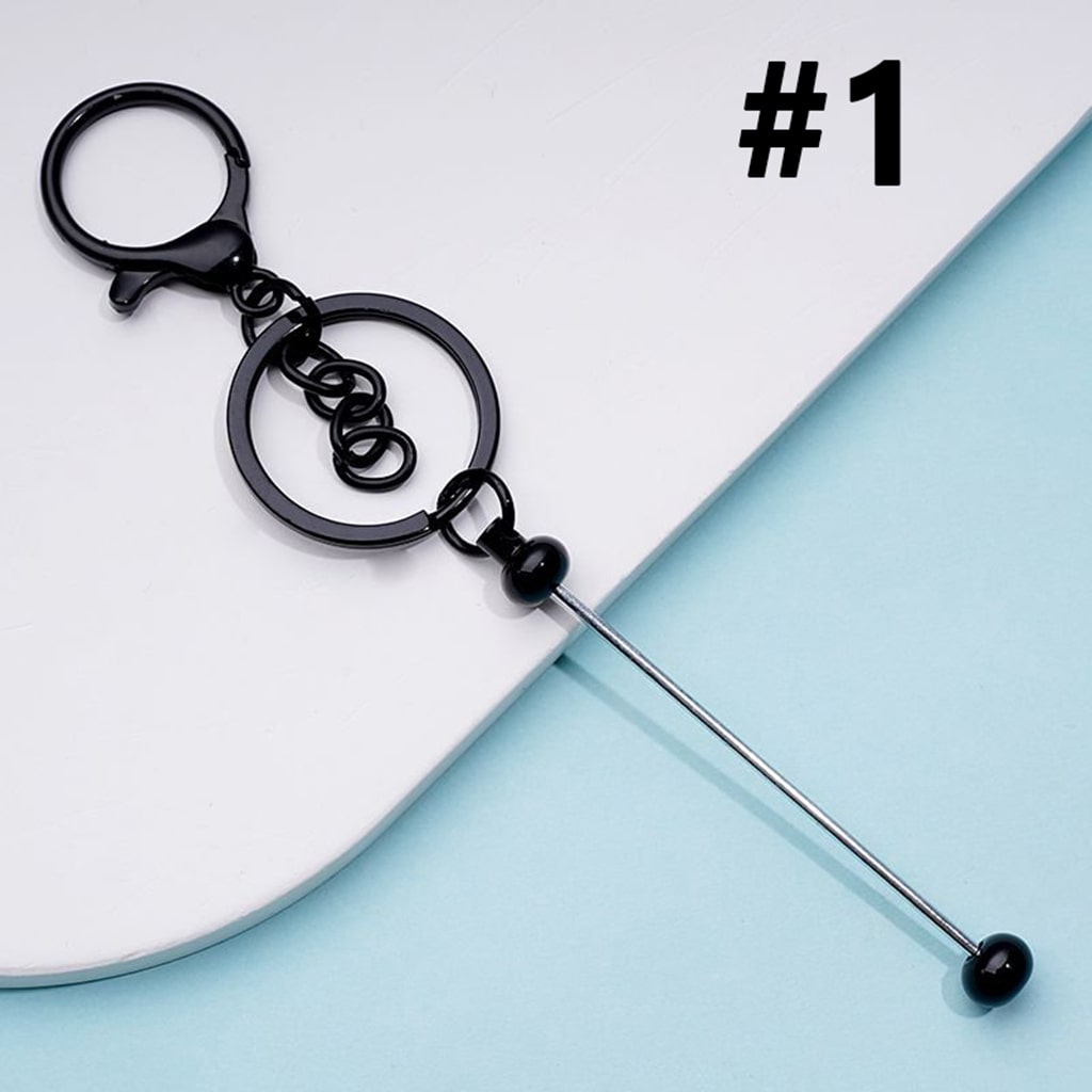 Metal Beadable Keychain with Bar and Lobster Clasp in Solid Colors