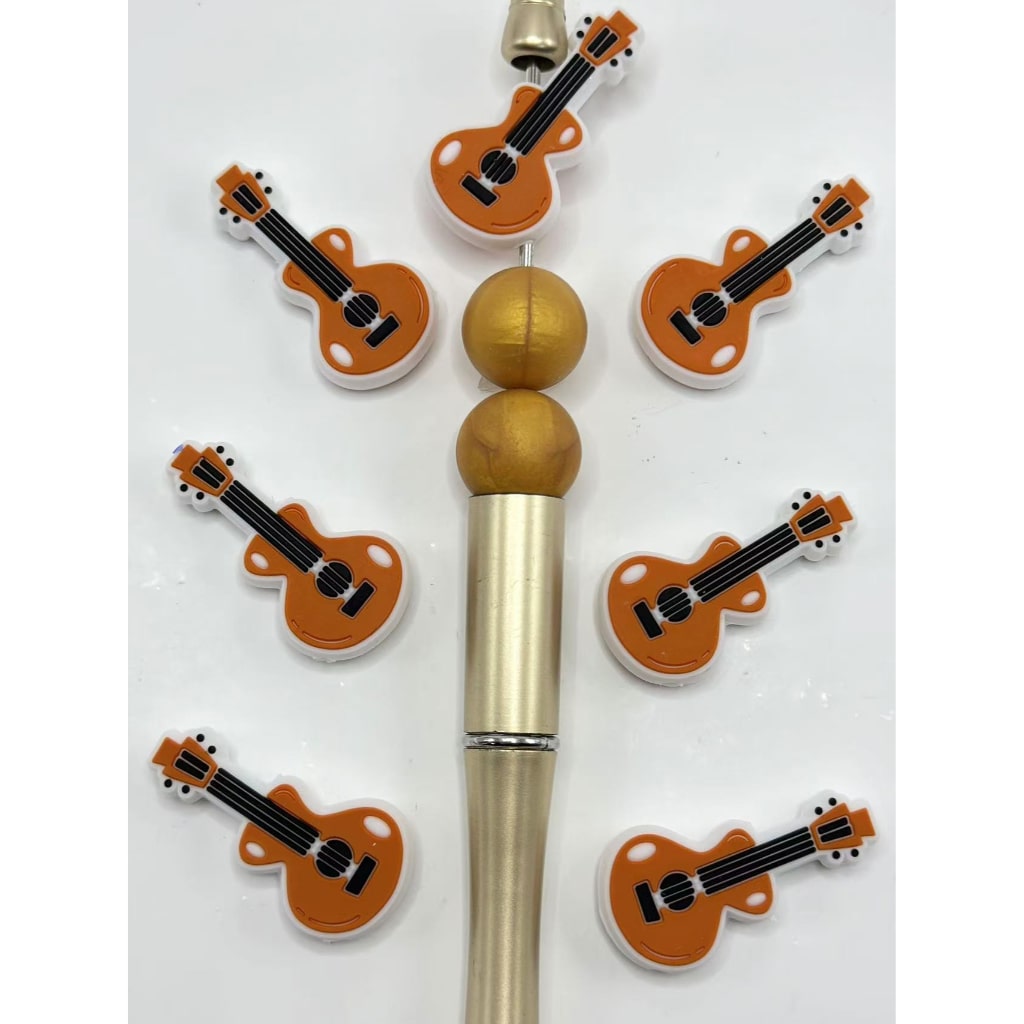 Mini Cute Brown Guitar Music Instruments Silicone Focal Beads