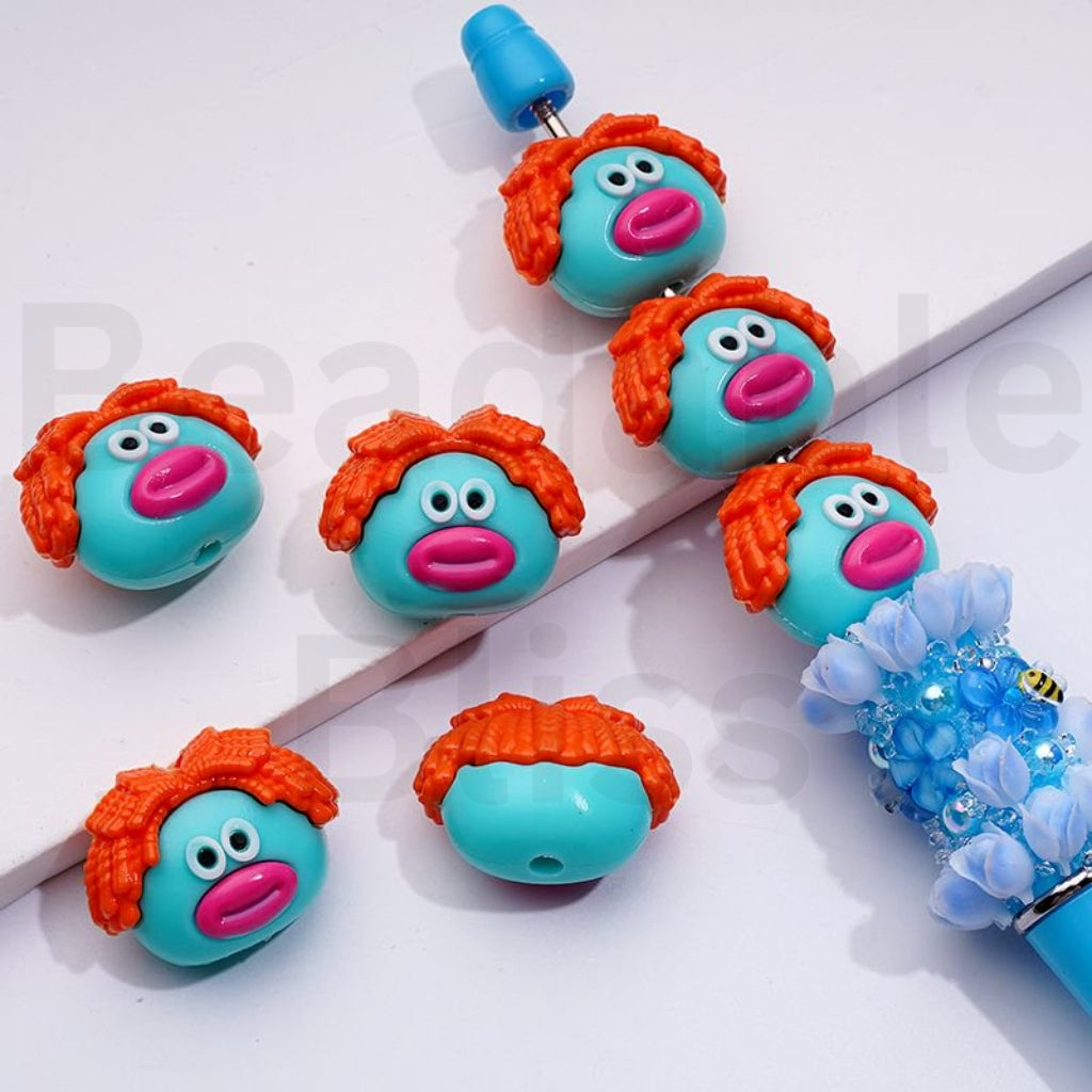 Mini Cute Girl with Orange Hair PVC Soft Rubber Beads, Around 18*23MM