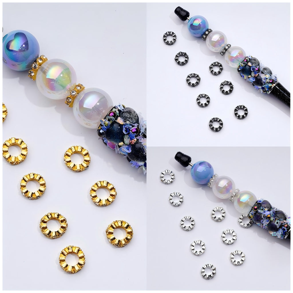 Mini Cute Gold Silver Gun Black Metal Round Spacer with Clear Rhinestones, Around 10MM