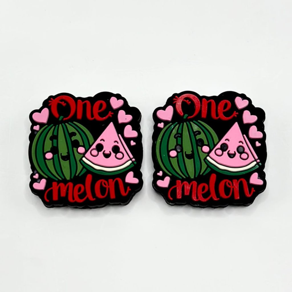 One Watermelon with Pink Heart Love Valentines Fruits Silicone Focal Beads