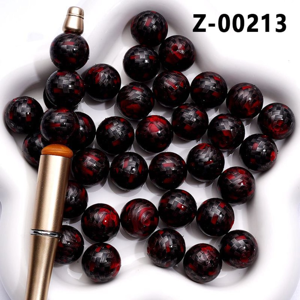 Red Black Striped Checked Printed Silicone Beads 15MM, Number Z-00213