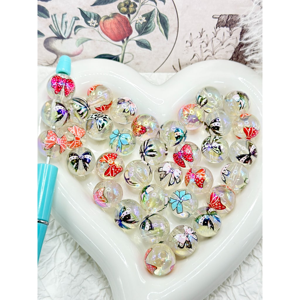 Shiny Colorful Multi Designs Bowknots Clear Round Acrylic Beads, Random Mix, 16MM