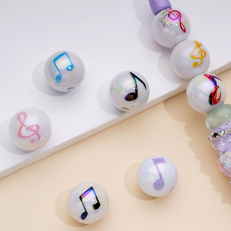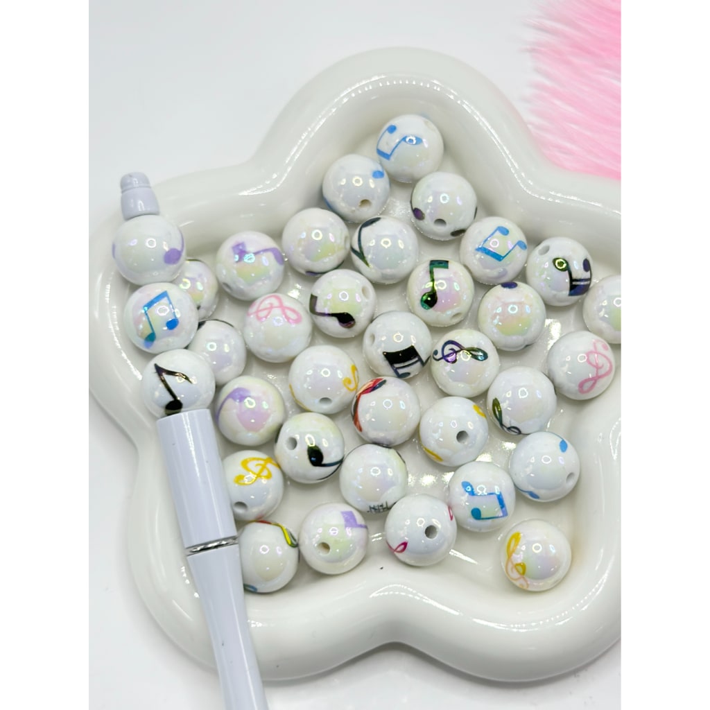 Shiny Glossy Music Notes White Round Acrylic Beads, Random Mix, 16MM