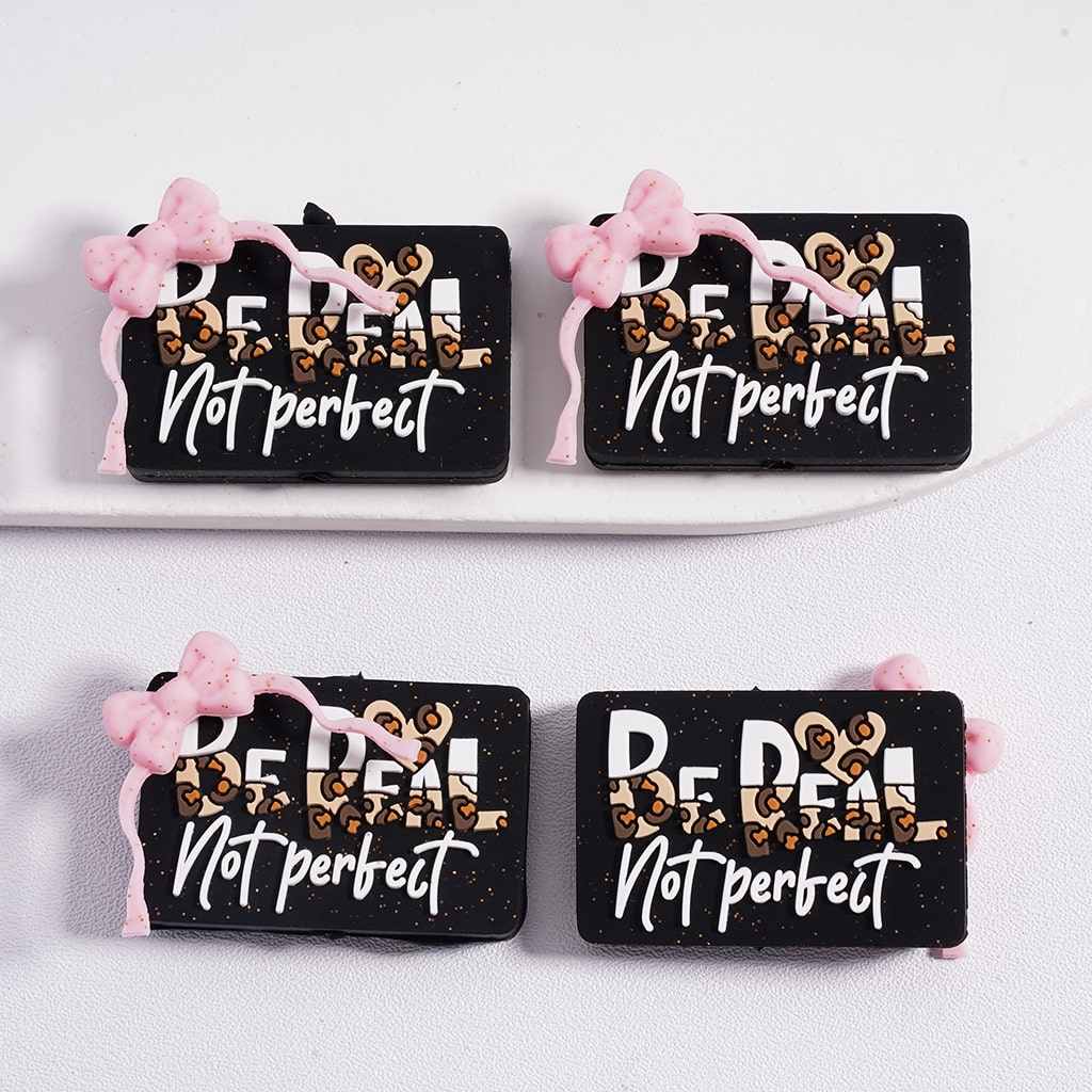 Silicone Focal Beads 3D Be Real Not Perfect with Pink Bowknot