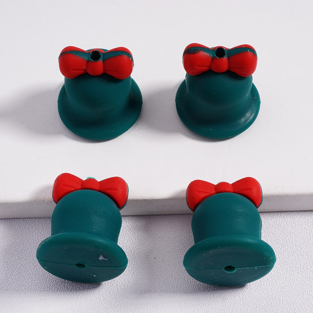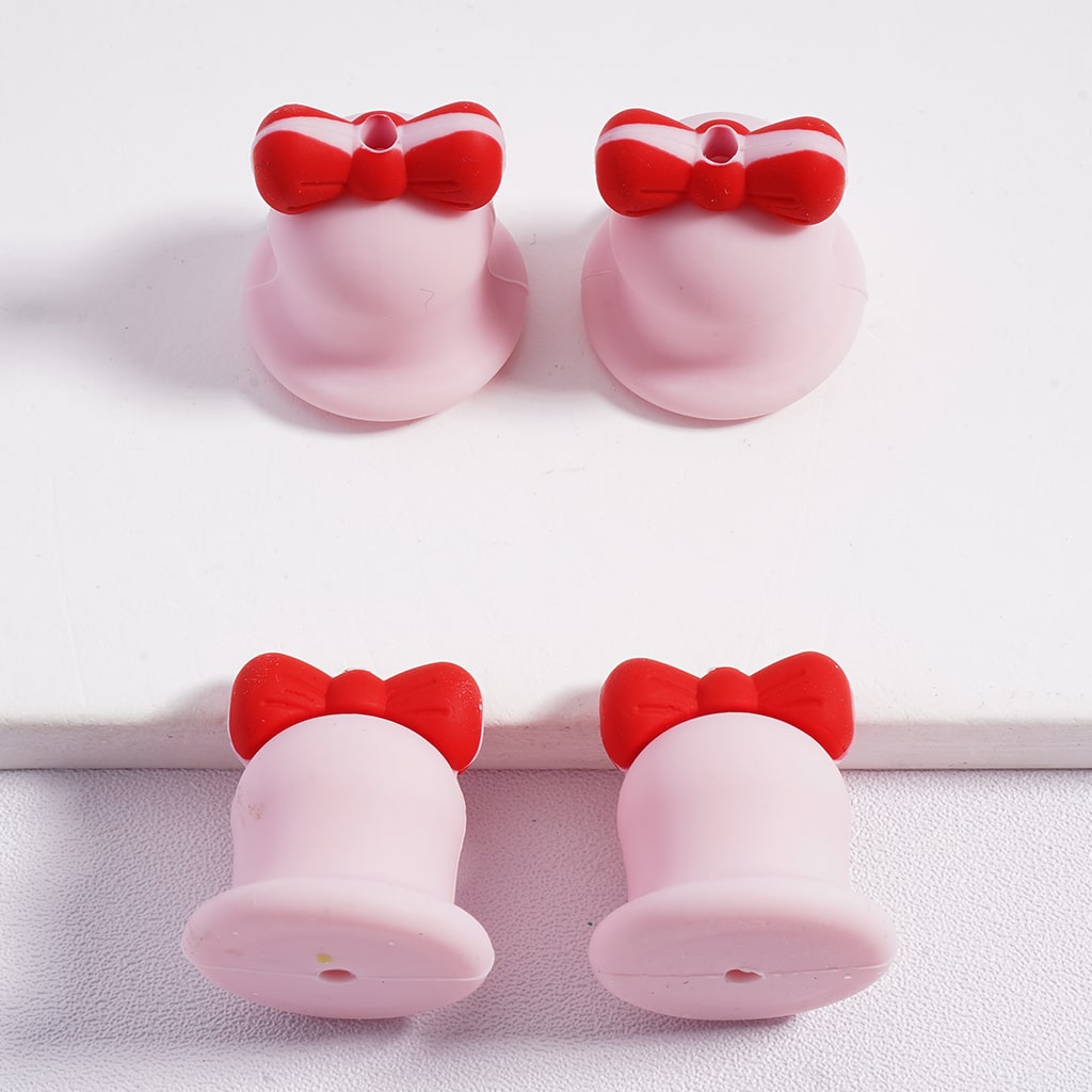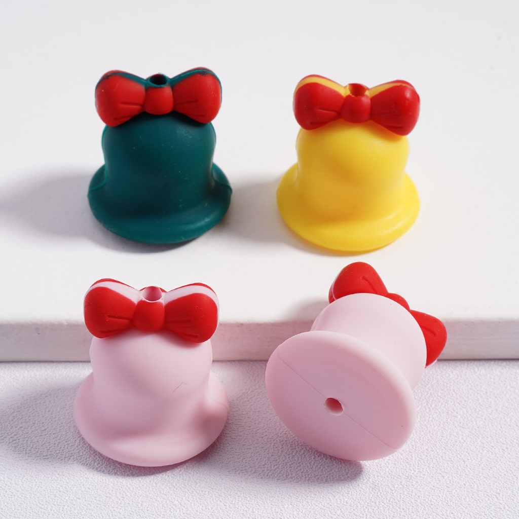 Silicone Focal Beads 3D Cute Christmas Bell with Red Bowknot Multi-Color