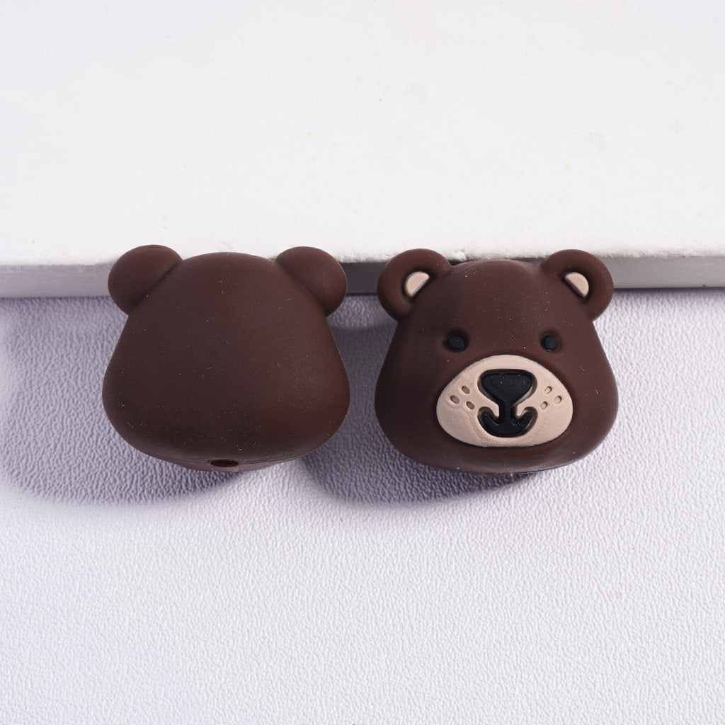 Silicone Focal Beads 3D Smiling Bear Face Head in Various Colors