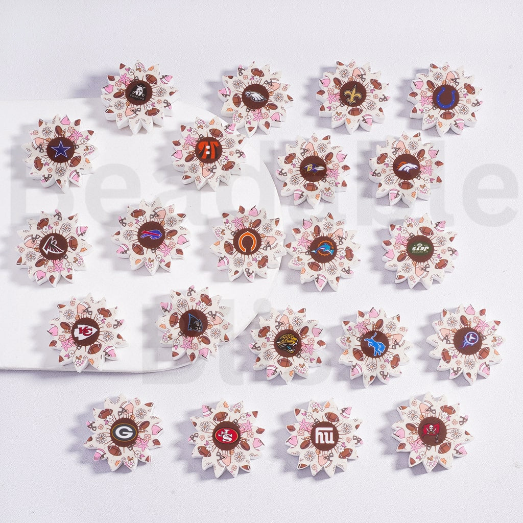 Silicone Focal Beads American Football Teams Topic Flowers, Random Mix