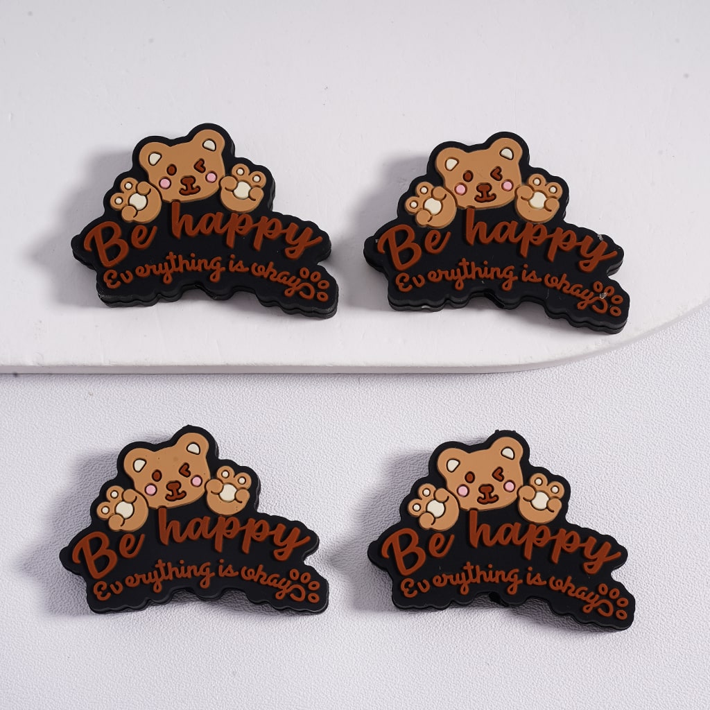 Silicone Focal Beads Cute Bear Be Happy Everything is Okay