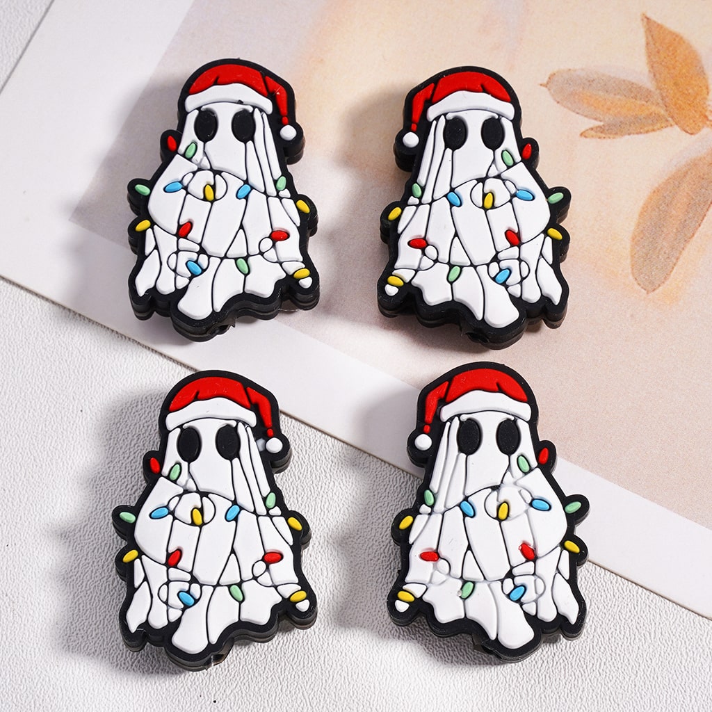 Silicone Focal Beads Cute Helloween Ghoul with Red Christmas Hat Covered by Colorful Lights