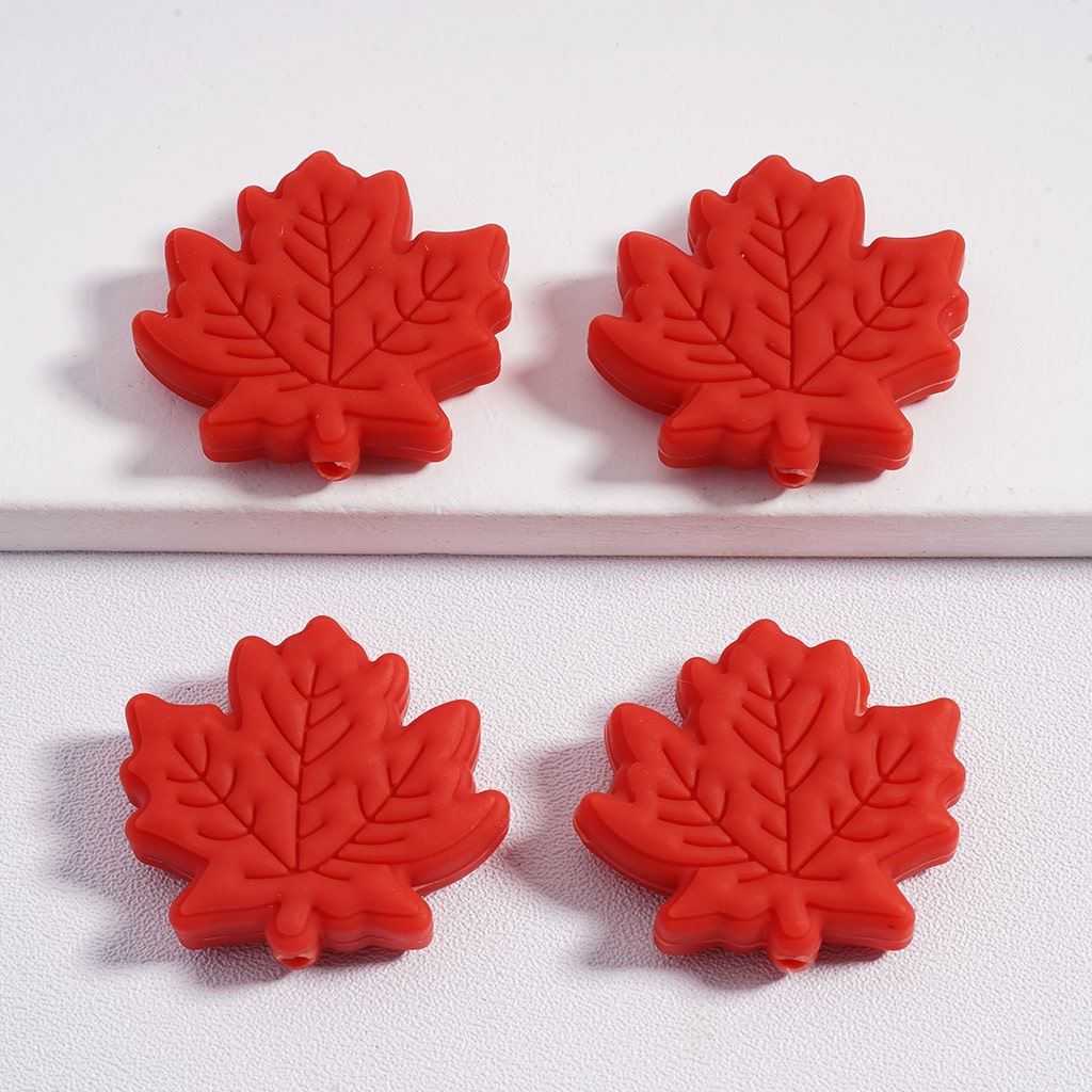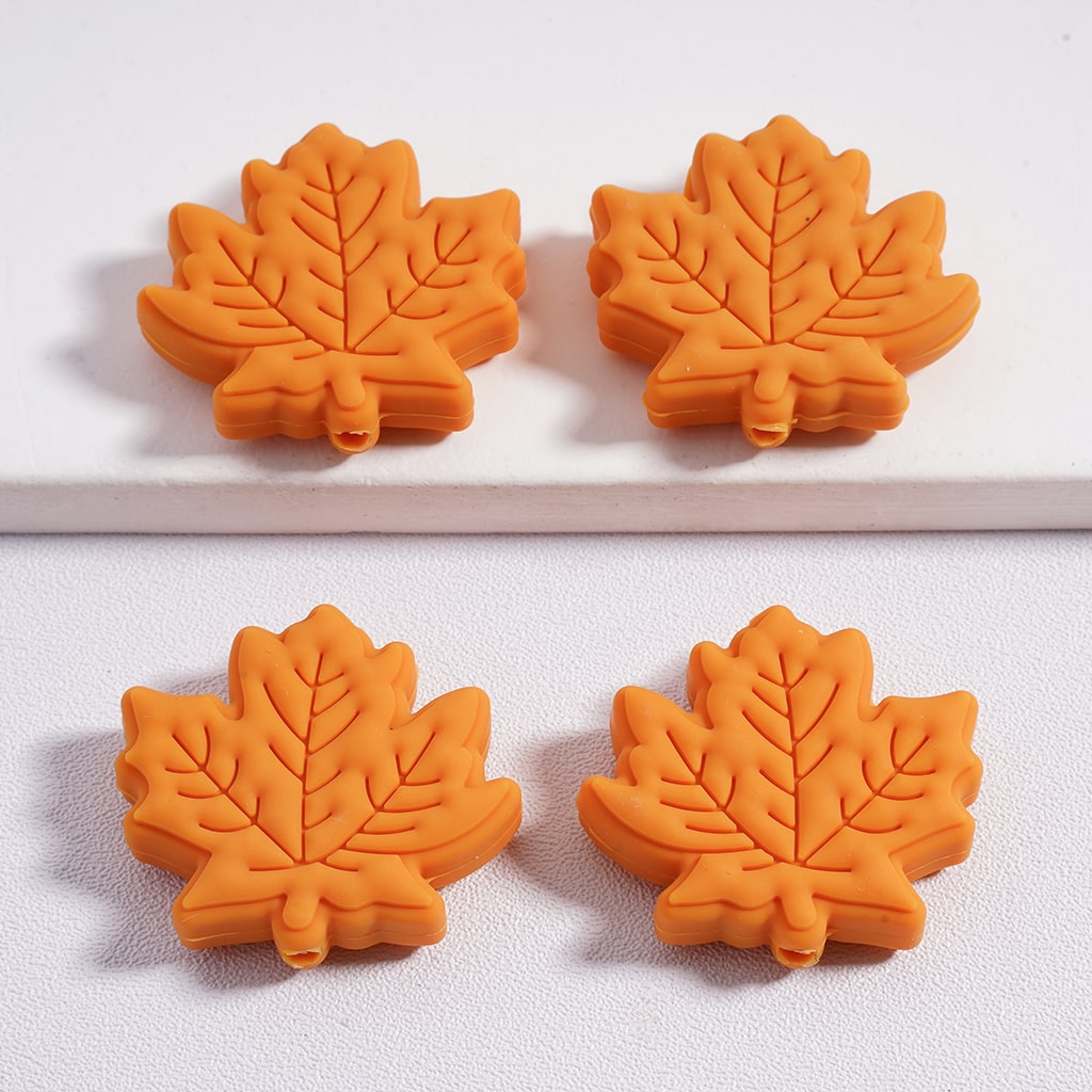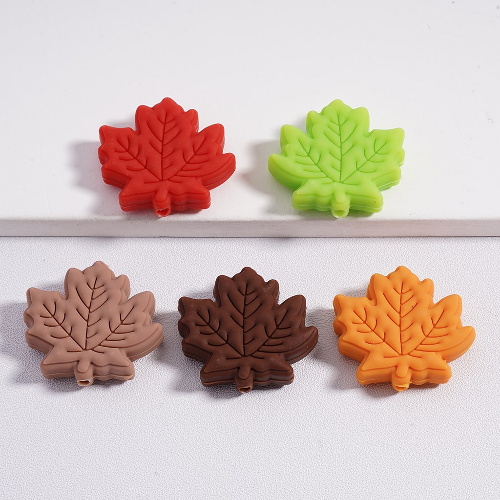 Silicone Focal Beads Cute Maple Leaves in Solid Color