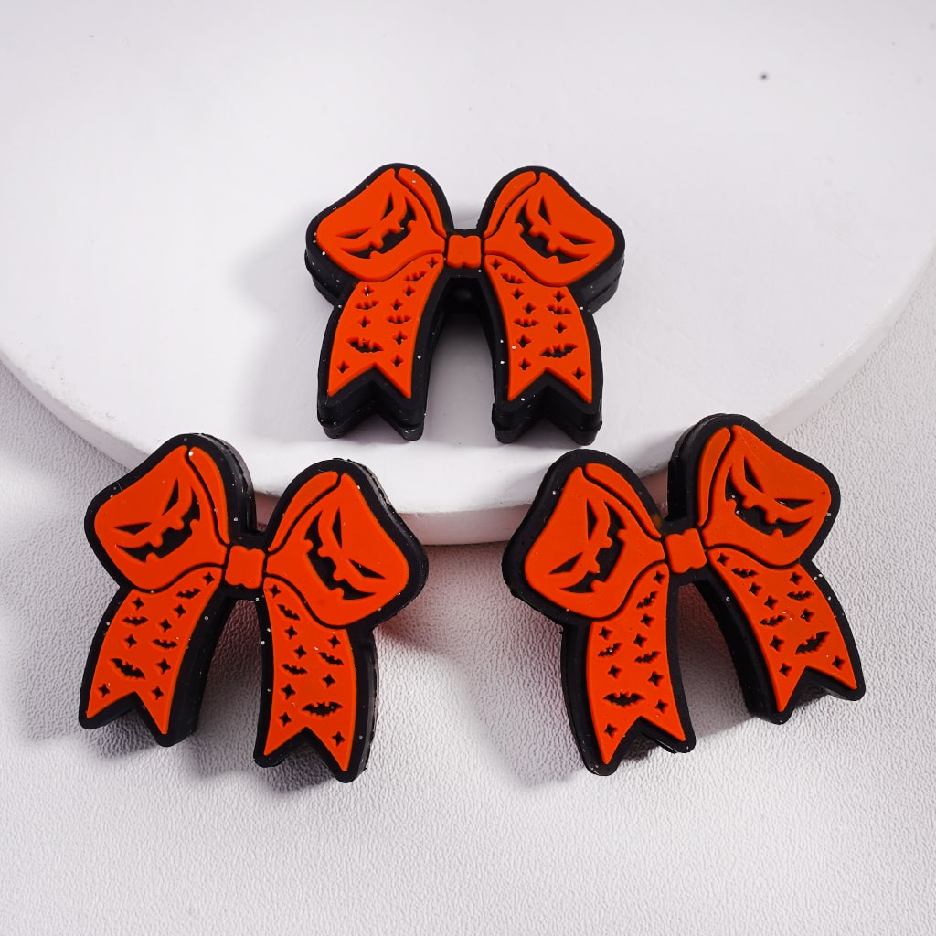 Silicone Focal Beads Halloween Orange Bowknot with Fright Mask Persona Bat Star
