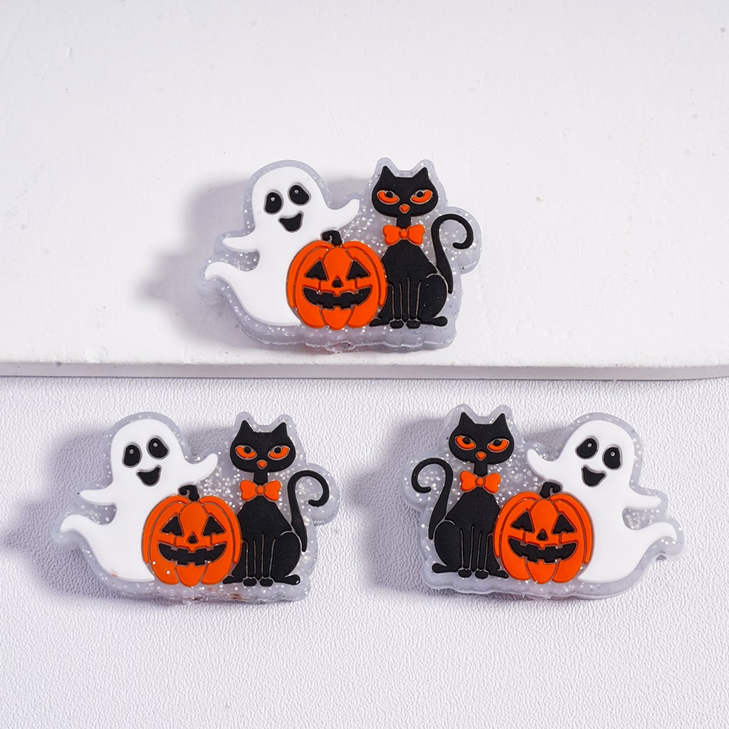 Silicone Focal Beads Halloween Series Cute Spooky Black Cat Face Pumpkin