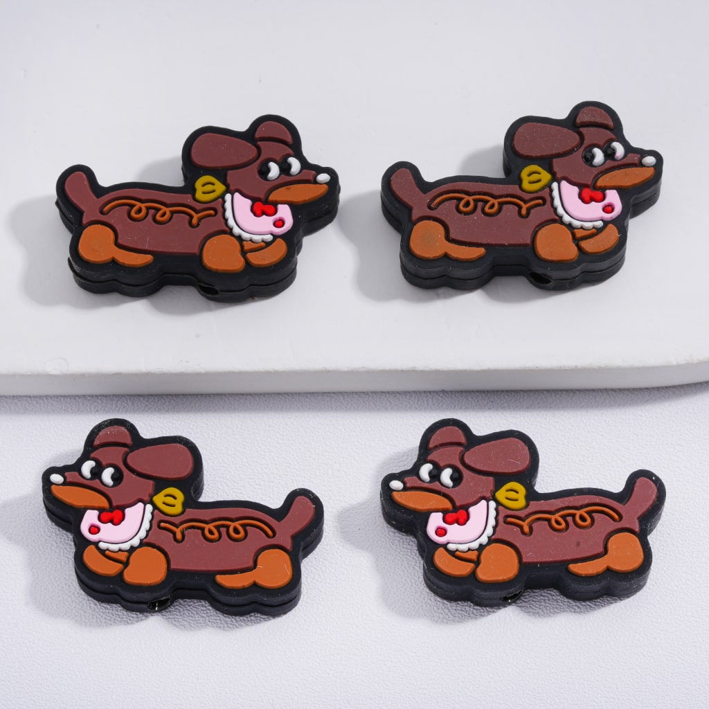 Silicone Focal Beads Little Cute Sausage Dog with Pink Bib