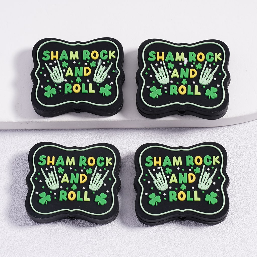 Silicone Focal Beads Shamrock and Roll Skeleton Hand Saint Patrick's Day