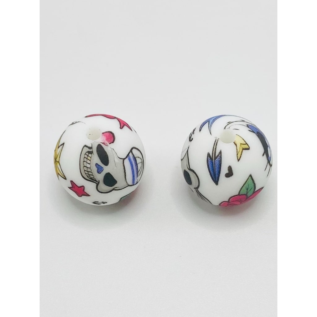 Skeleton and Cherry Halloween Printed Silicone Beads Number 450