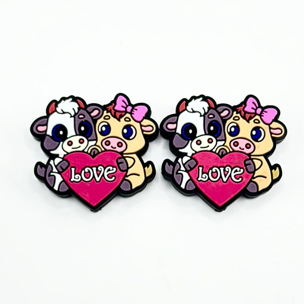 Two Little Cute Cows Hold a Red Heart Love Valentines Silicone Focal Beads (Ship out in Around 4-6 Days after Ordering)